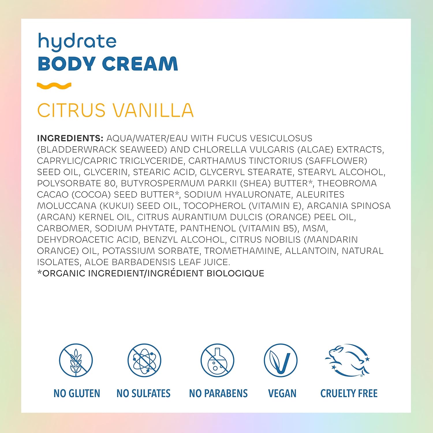 - Contains: 1- 6 Ounce Tube of Seaweed Bath Co. Hydrate Citrus Vanilla Scented Body Cream