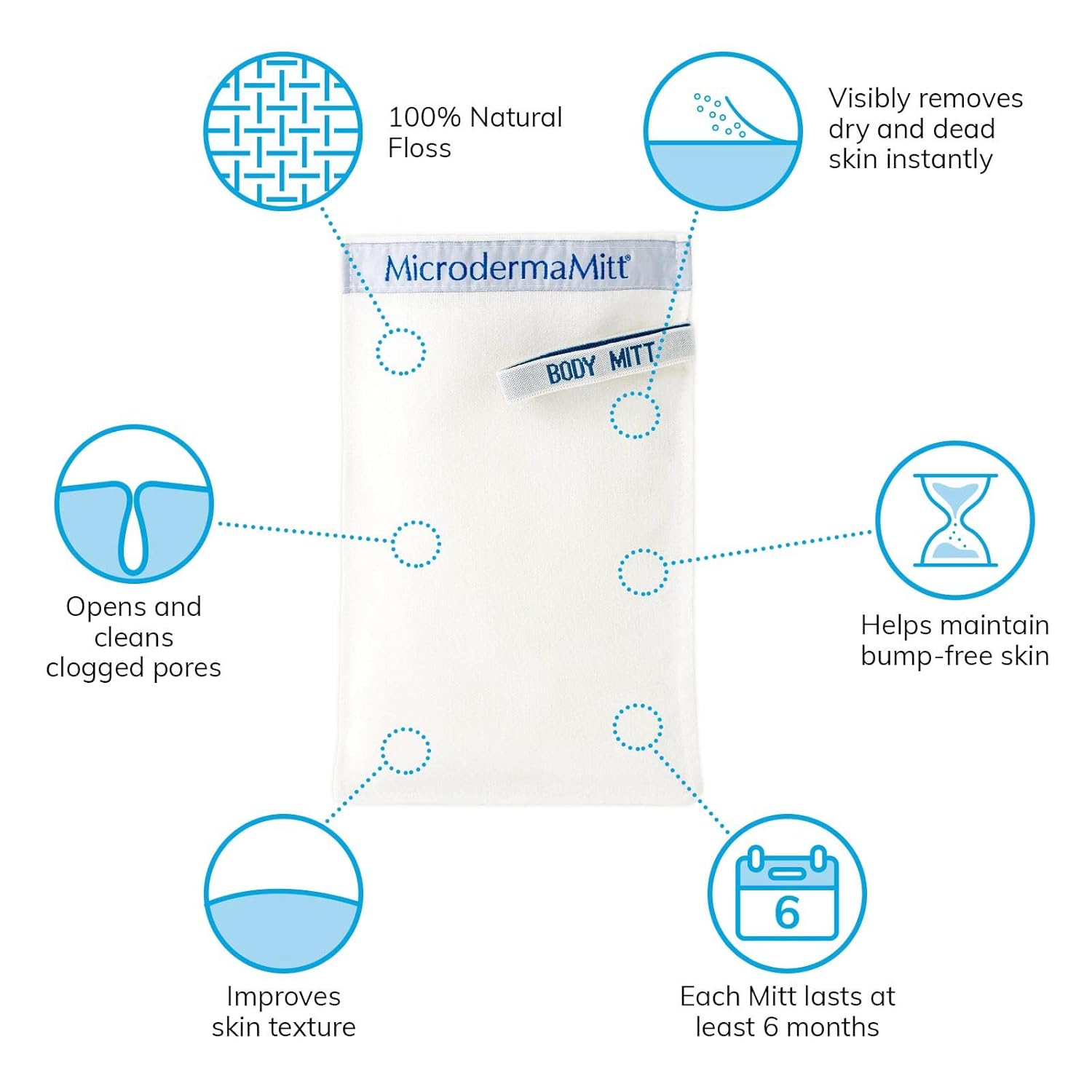 - REVEAL RADIANT SKIN INSTANTLY: MicrodermaMitt exfoliating body scrubber removes dead skin cells & deep cleans pores using just water! Our premium exfoliating mitt for shower delivers microderm-quality results, visibly improving skin texture & reducing bumps from keratosis pilaris (chicken skin).