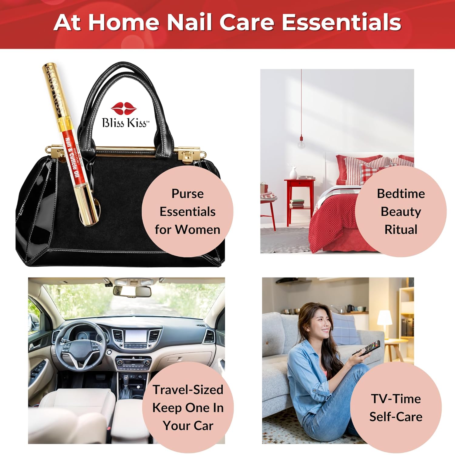 - Mess-Free, On-the-Go Application – The Bliss Kiss cuticle oil pen allows for precise, controlled nail strengthener and growth serum application without spills. Convenient nail growth oil for use at home, the office, or on the go.