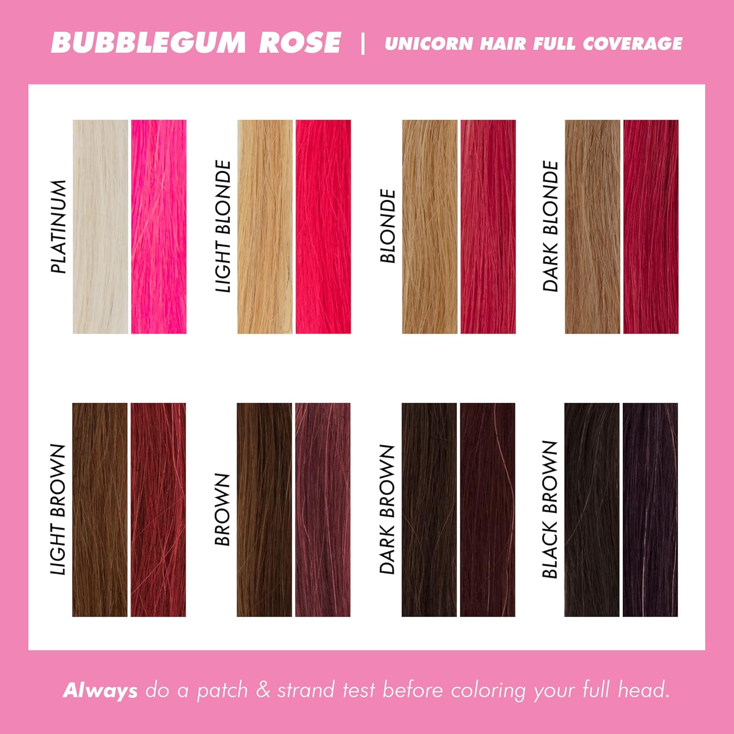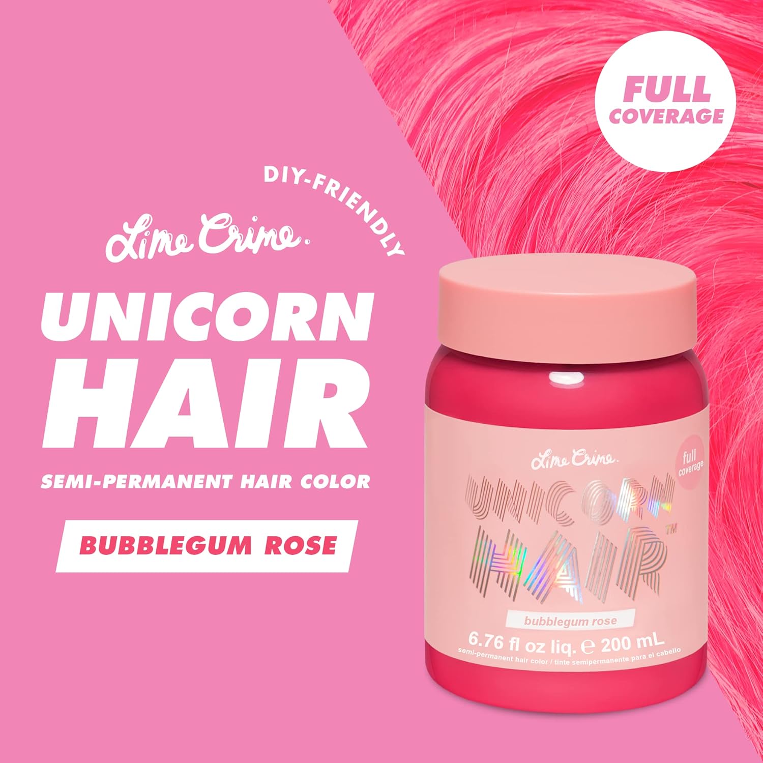 - Bubblegum Rose Unicorn Hair Dye: Dyed and gone to Unicorn Heaven! Lime Crime Unicorn Hair is a DIY-friendly, semi-permanent color dye that transforms hair into vibrant colors... all from the comfort of your own home. Bubblegum Rose is a warm rose pink that will make your fantasy hair color dreams come true, and its sugary citrus vanilla scent will make your transformation even sweeter!