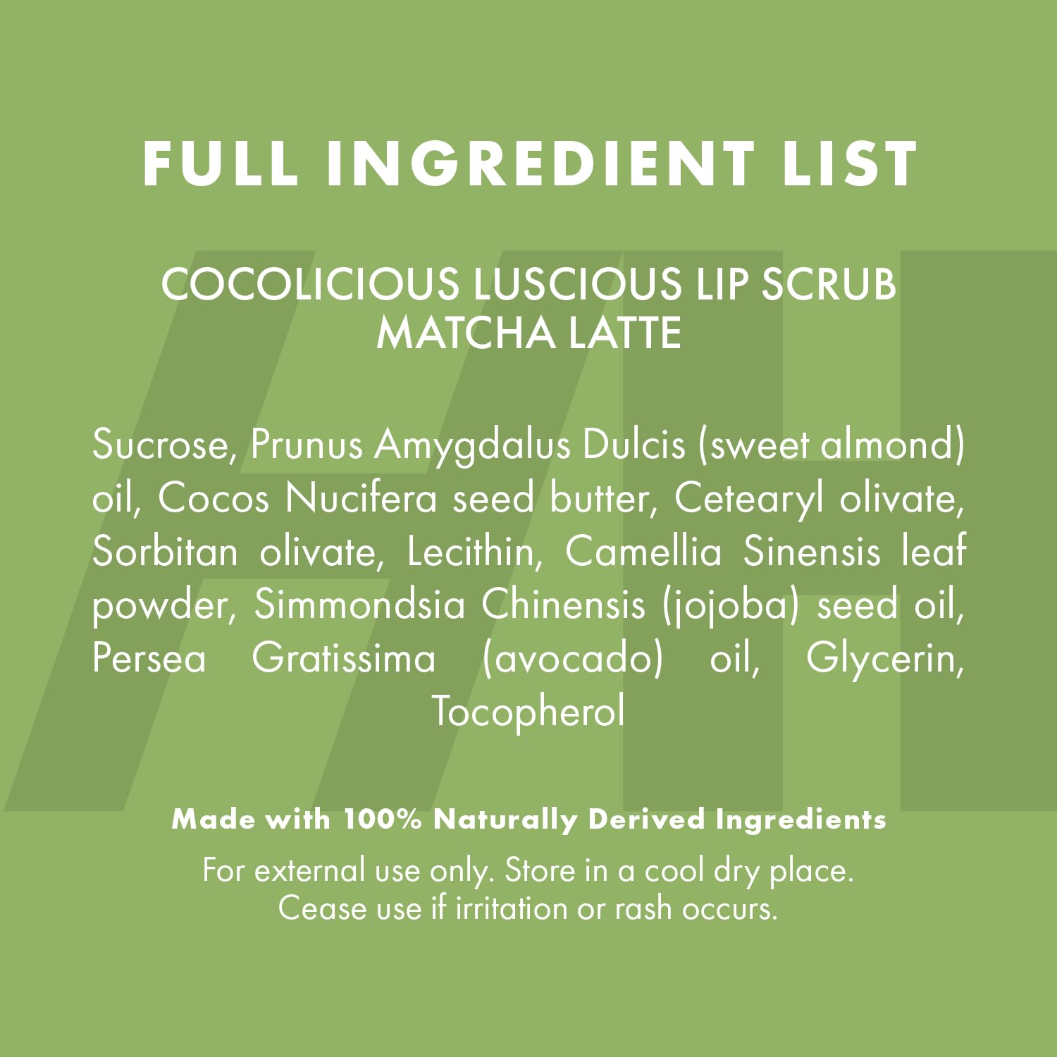 - VEGAN CRUELTY FREE: Made with love, discover the difference of our clean skincare. Matcha sugar lip scrub buffs away uneven texture and dullness. Nourishes for visibly smoother, brighter lips
