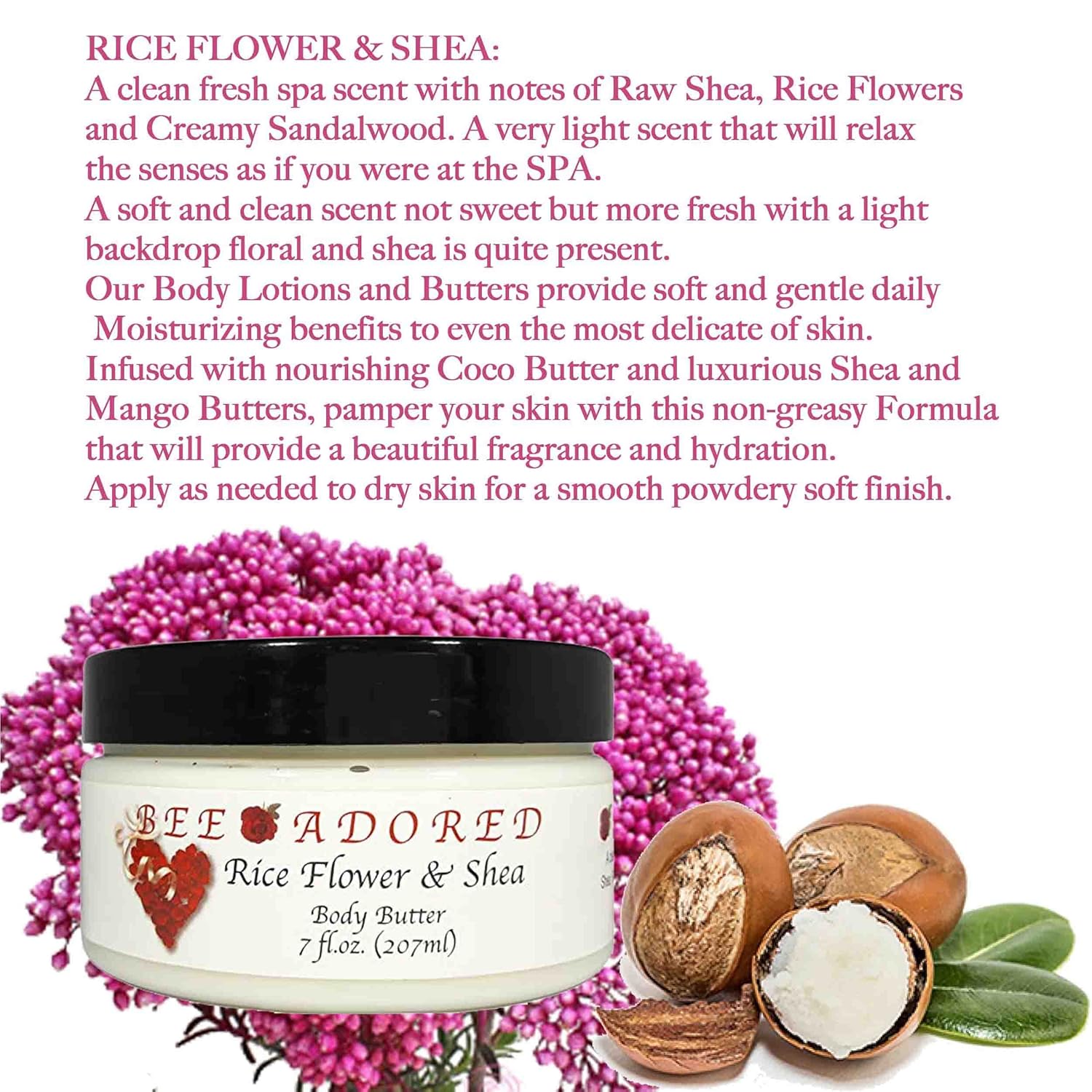 Body Butter, Rice Flower & Shea, 8 Fluid Ounce