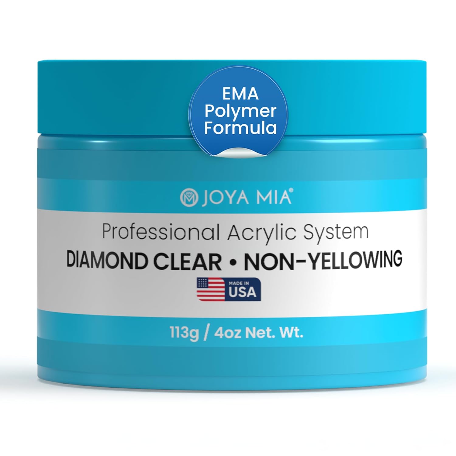 Joya Mia Acrylic Powder for Nails, MMA-Free, Super Adhesion Professional Powder for Flawless & Long-Lasting Nail Enhancements, Easy Application, Vibrant & Stunning Colors - Diamond Clear, 4 oz