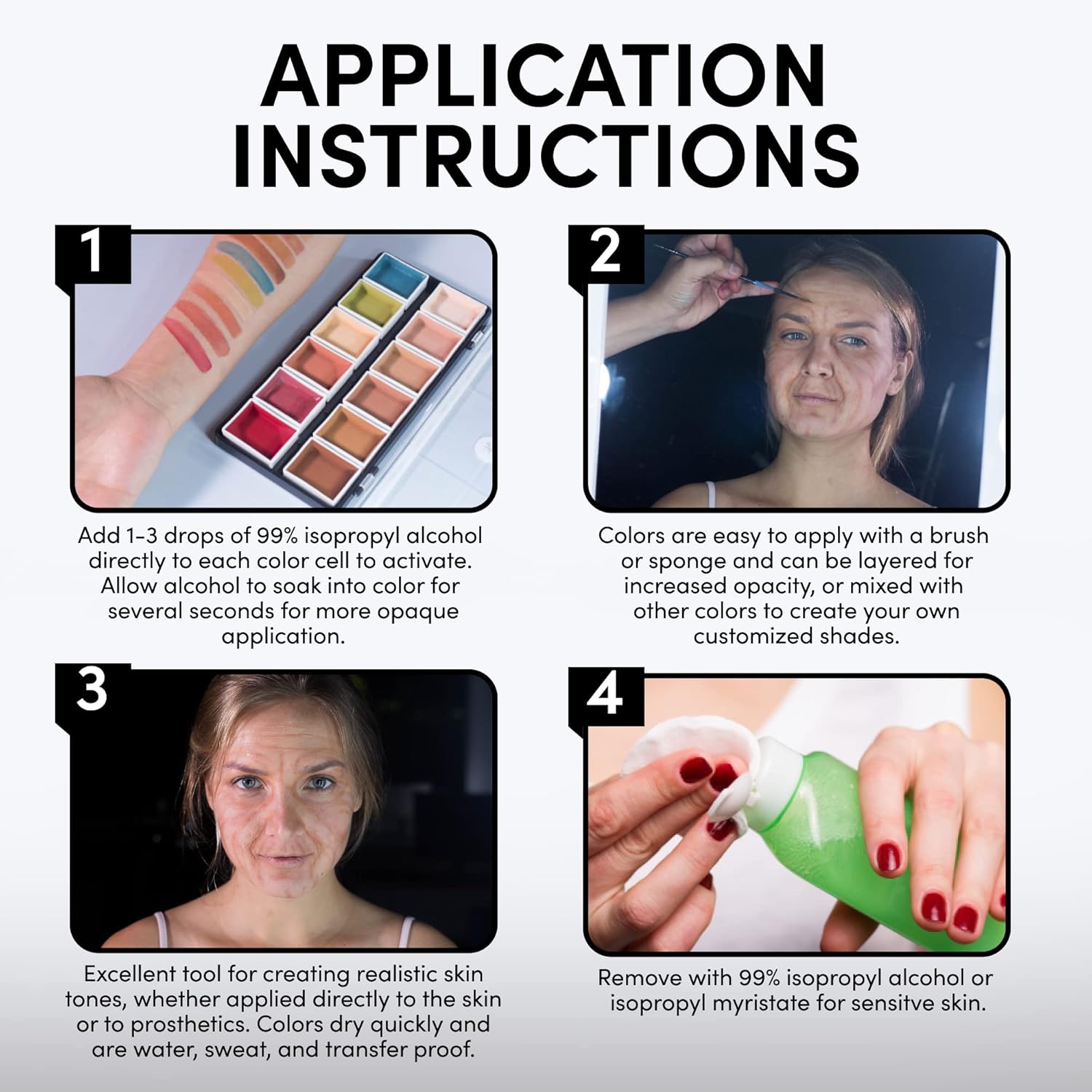 - Product Benefits : Highly pigmented, alcohol-activated makeup palette for realistic SFX and tattoo coverage, suitable for various skin tones Highly pigmented, alcohol-activated makeup palette for realistic SFX and tattoo coverage, suitable for various skin tones