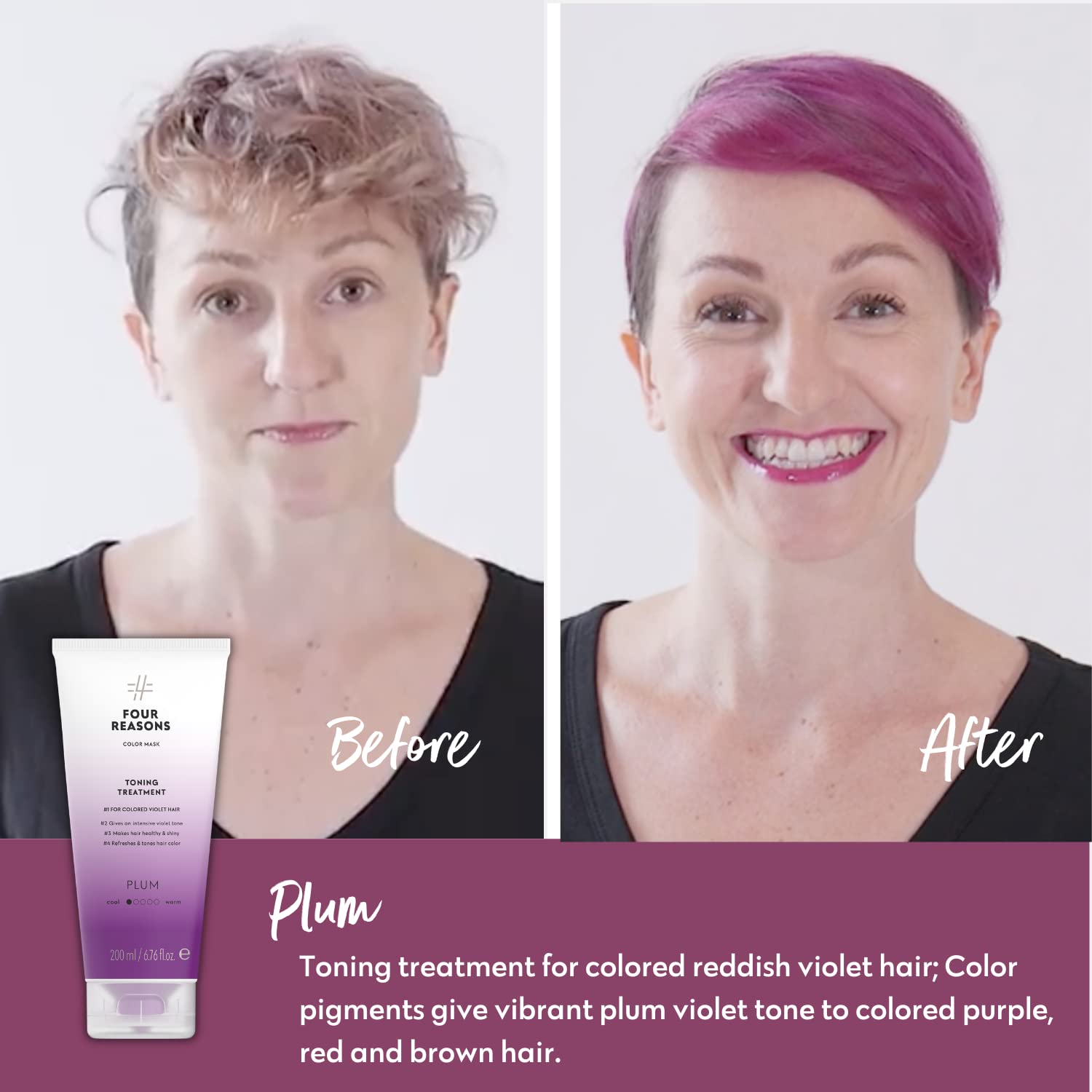 Four Reasons Color Mask - Plum - (27 Colors) Toning Treatment, Color Depositing Conditioner, Tone & Enhance Color-Treated Hair - Semi Permanent Hair Dye, Vegan and Cruelty-Free, 6.76 fl oz