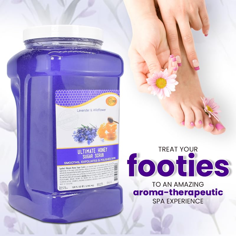 SPA REDI – Sugar Body Scrub, Honey, Lavender and Wildflower, 128 Oz Exfoliating, Moisturizing, Hydrating and Nourishing, Glow, Polish, Smooth and Fresh Skin - Body Exfoliator