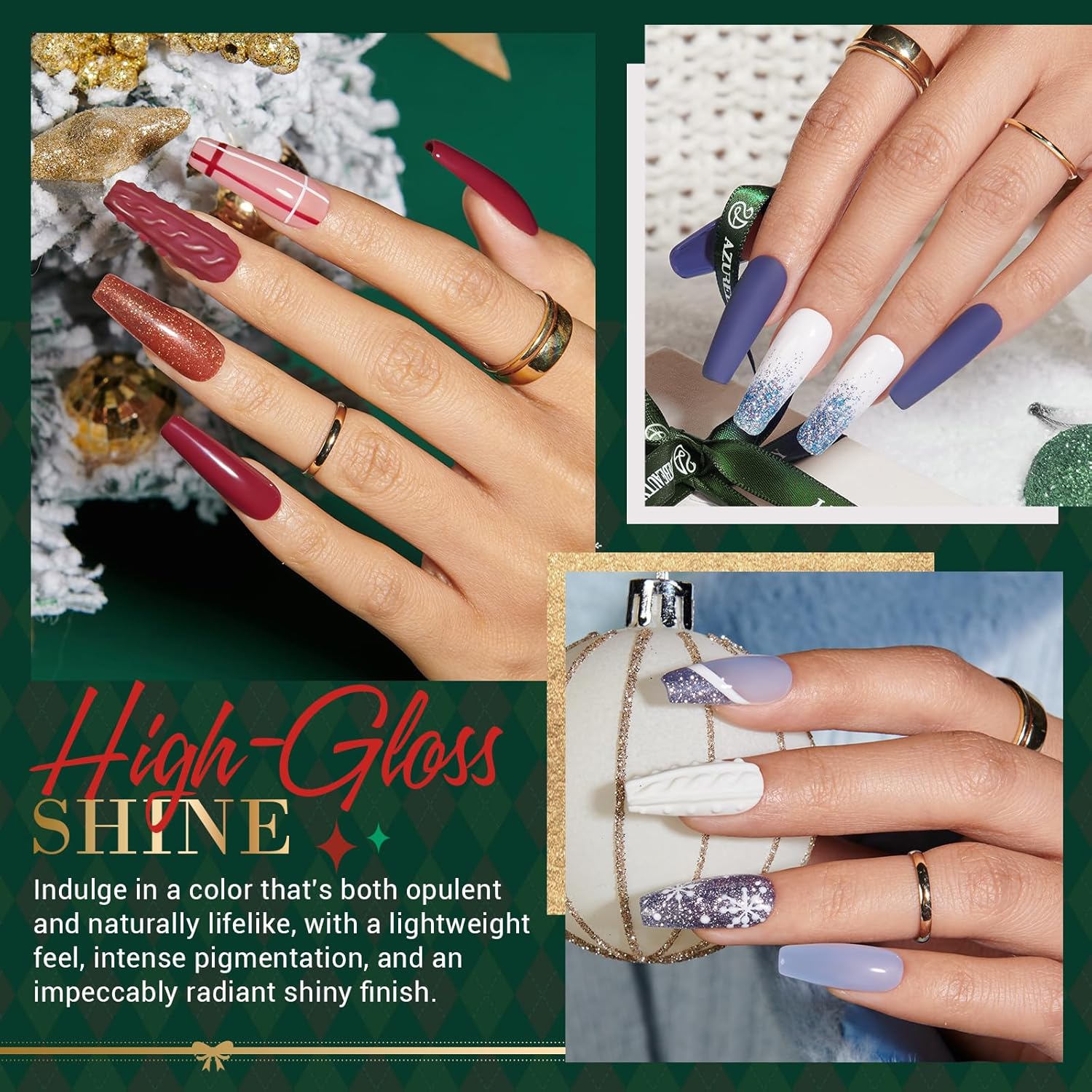 AZUREBEAUTY 31Pcs Dip Powder Nail Kit Red Green Glitter White 20 Colors Acrylic Dipping Powder Liquid Set with Top/Base Coat Activator for French Nails Art DIY Salon Christmas Gift