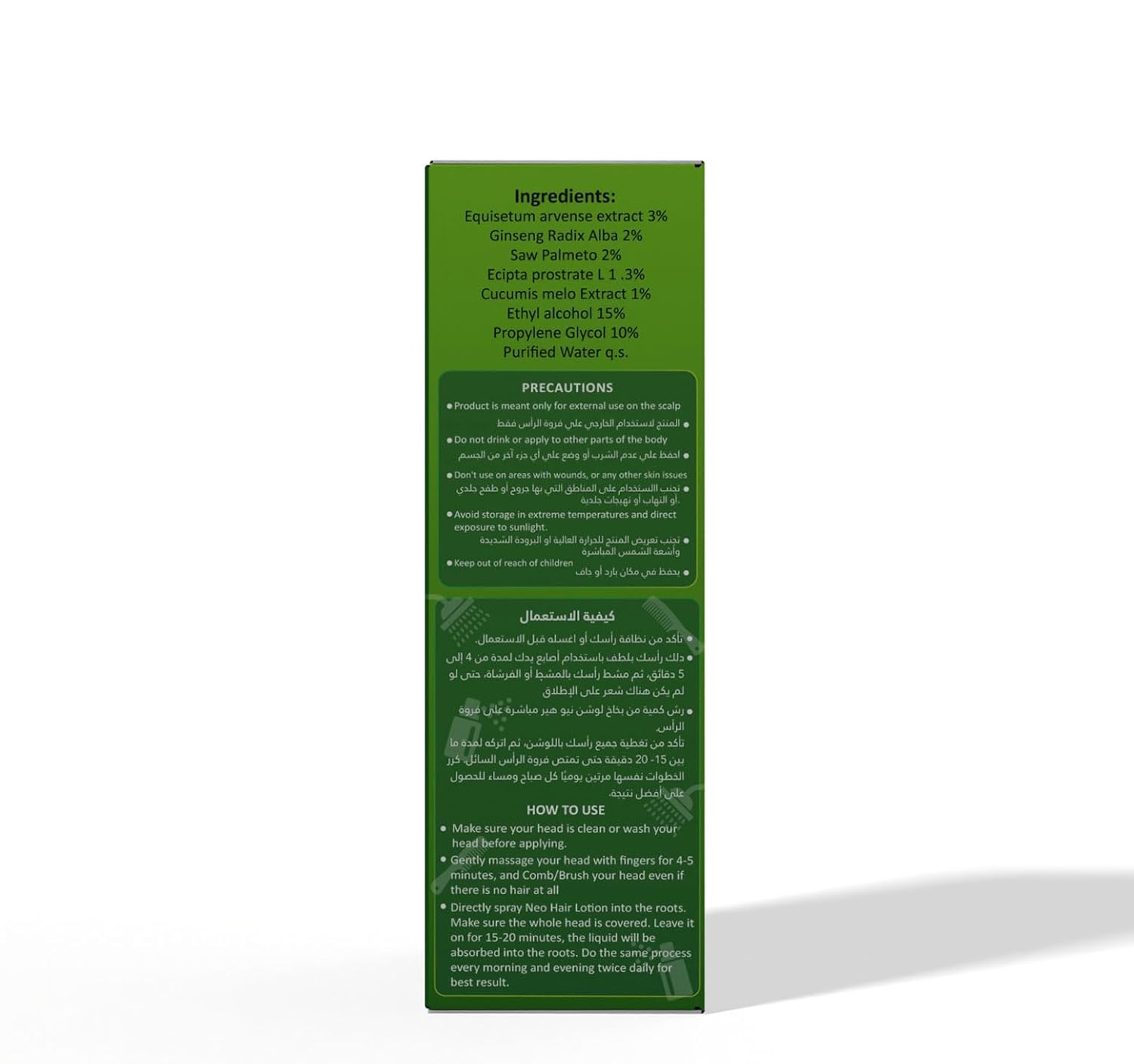 - Neo Hair Lotion uses Cucumis Melo Extract which is a form of Vitamin B which is required to prevent hair loss and promote hair growth. and nourish hair.