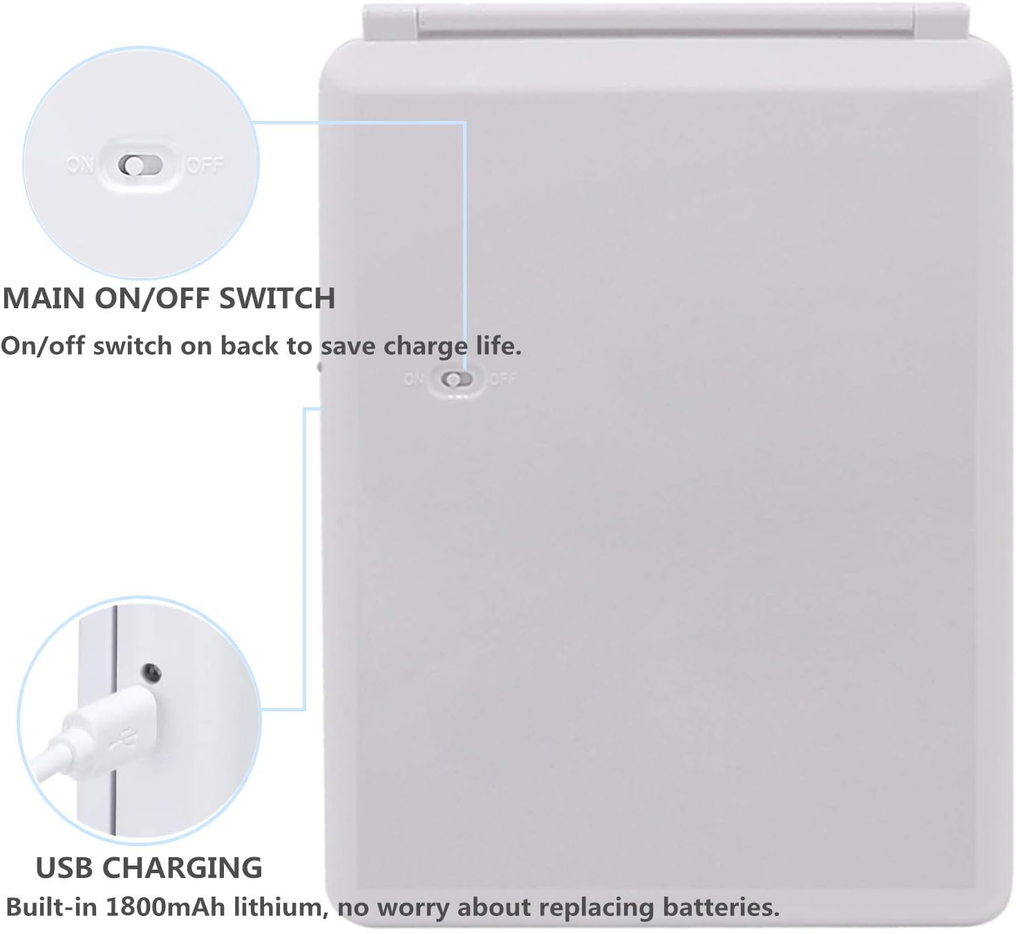 • 【 Rechargeable Illuminated Mirror 】- Built-in 1800mAh lithium battery, connect a laptop, charger or mobile power supply via Micro USB for charging, no worry about replacing batteries. Compact, lightweight, ultra thin and foldable, you can easily put it in your backpack and suitcase, fitting for home, travel or working use.