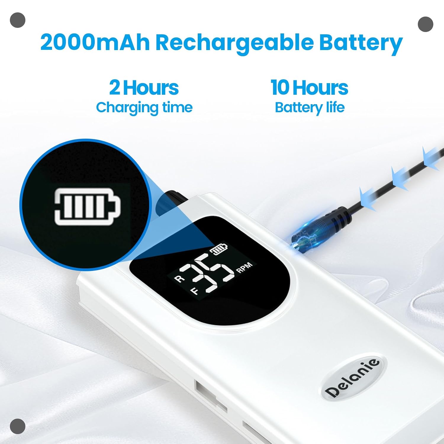 - Easy-to-Use: 2000mAh battery for up to 10 hours of continuous use on a single charge. Forward and reverse options for both left- and right-handed uses. The smart screen tells you information such as speeds, rotary directions, and remaining power