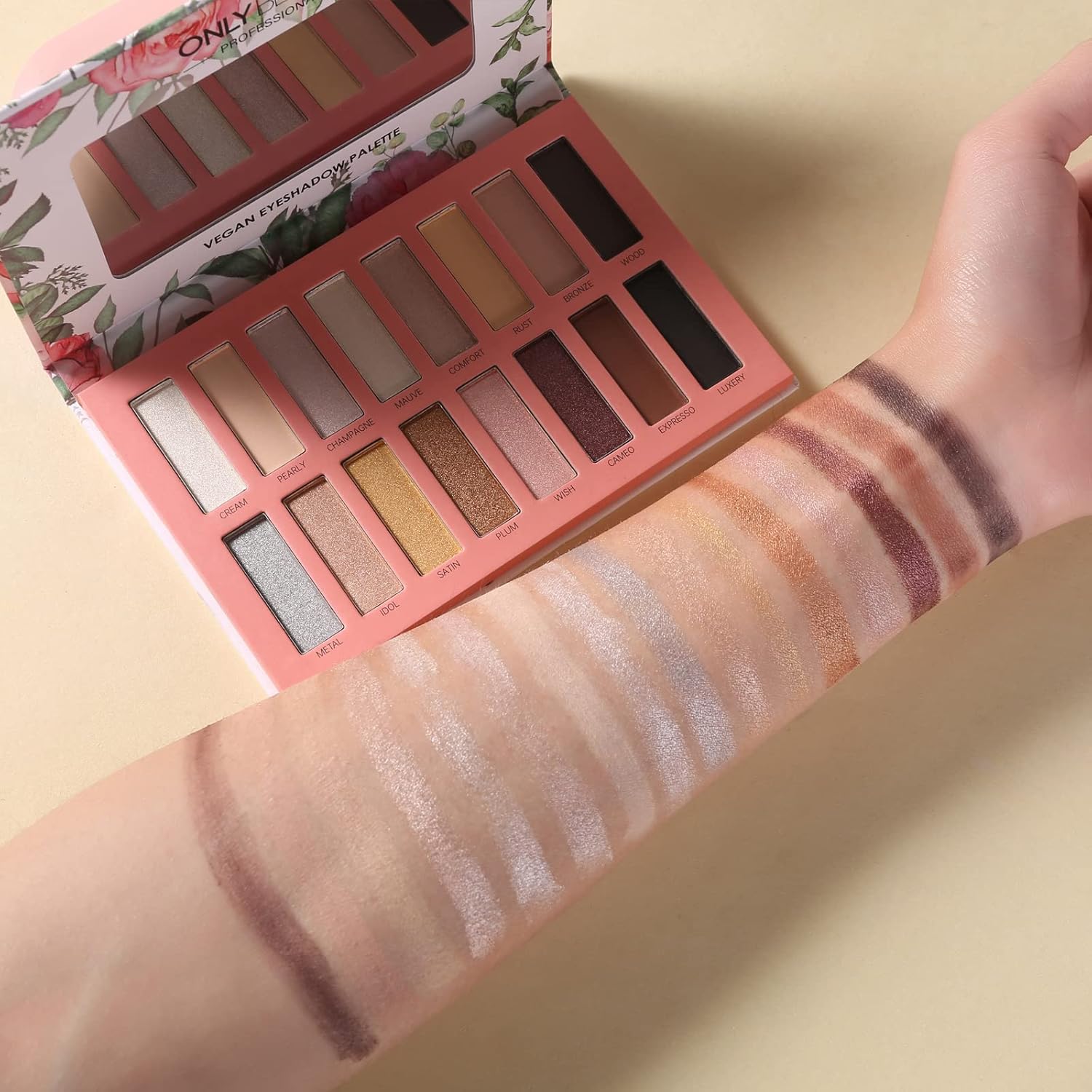 - 【High Pigment Organic Eyeshadow Palette】This Nude Eyeshadow Palette comes from natural, 88% Organic, Vegan, Cruelty&Gluten-free - Created with ingredients of Plant Extracts like Sage and Evening Primrose, the highest quality and the most updated ultra-micronized, luxuriously pigmented waterproof eyeshadow cream formula, serious staying power and blendability.