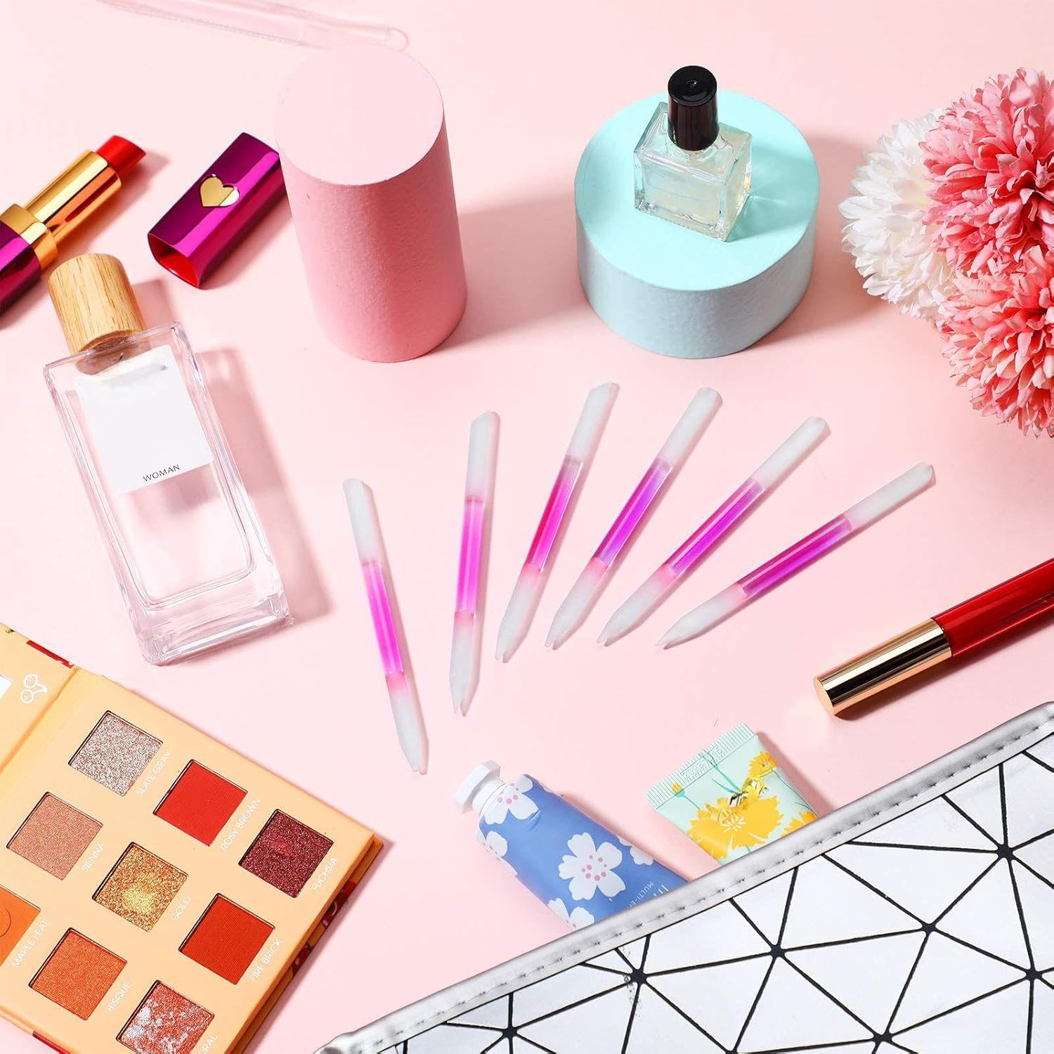 Maitys 6 Pieces Glass Cuticle Pusher Glass Cuticle Stick Set Double Sided Crystal Nail Files Precision Manicure Pedicure Pusher Tools(Pink)