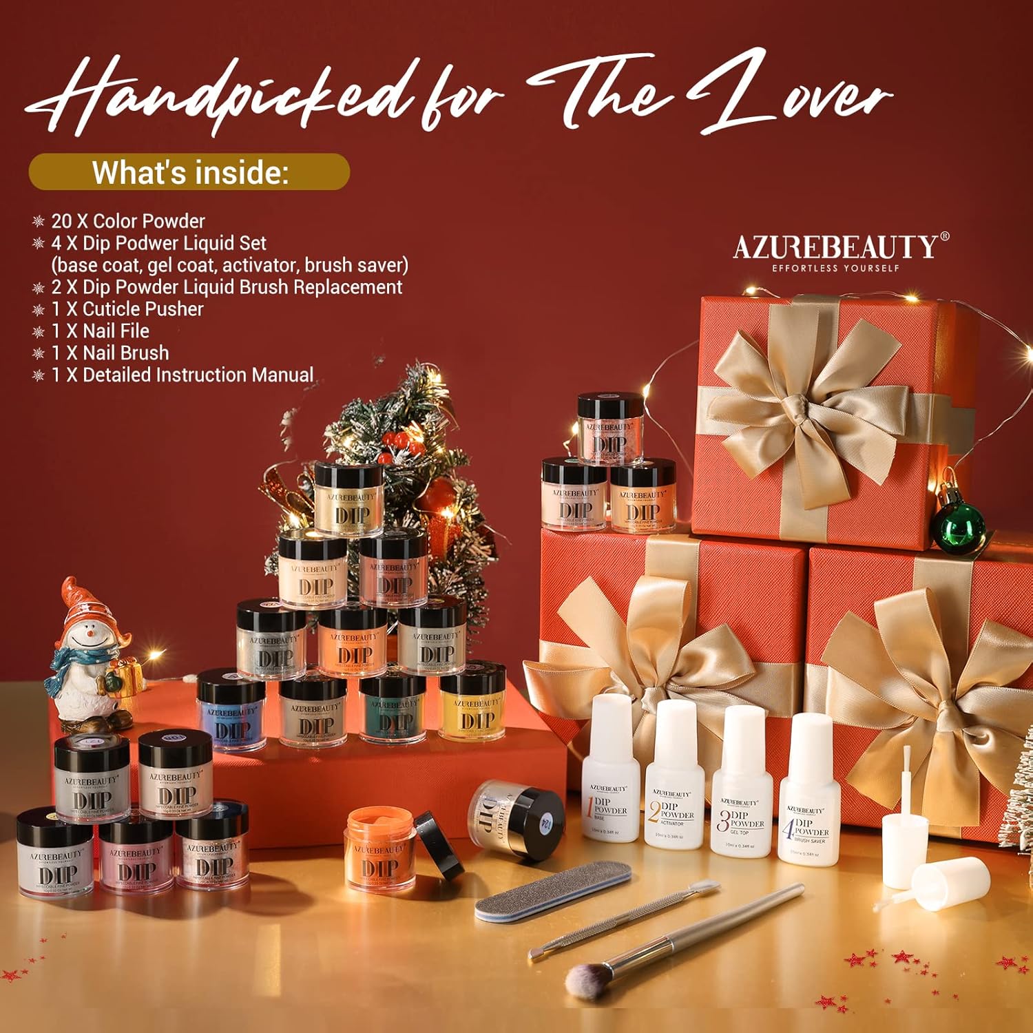 - 【Superior Quality & Long Lasting】 AZUREBEAUTY dip nails powder starter kit is a long lifespan, anti-chip. Unrivaled shiny and vivid, non-yellowing, and superb adhesion. Most fashionable style colors, full but natural looking, lightweight, breathable, and waterproof. It can last for more than 28 days even without nail dryer curing