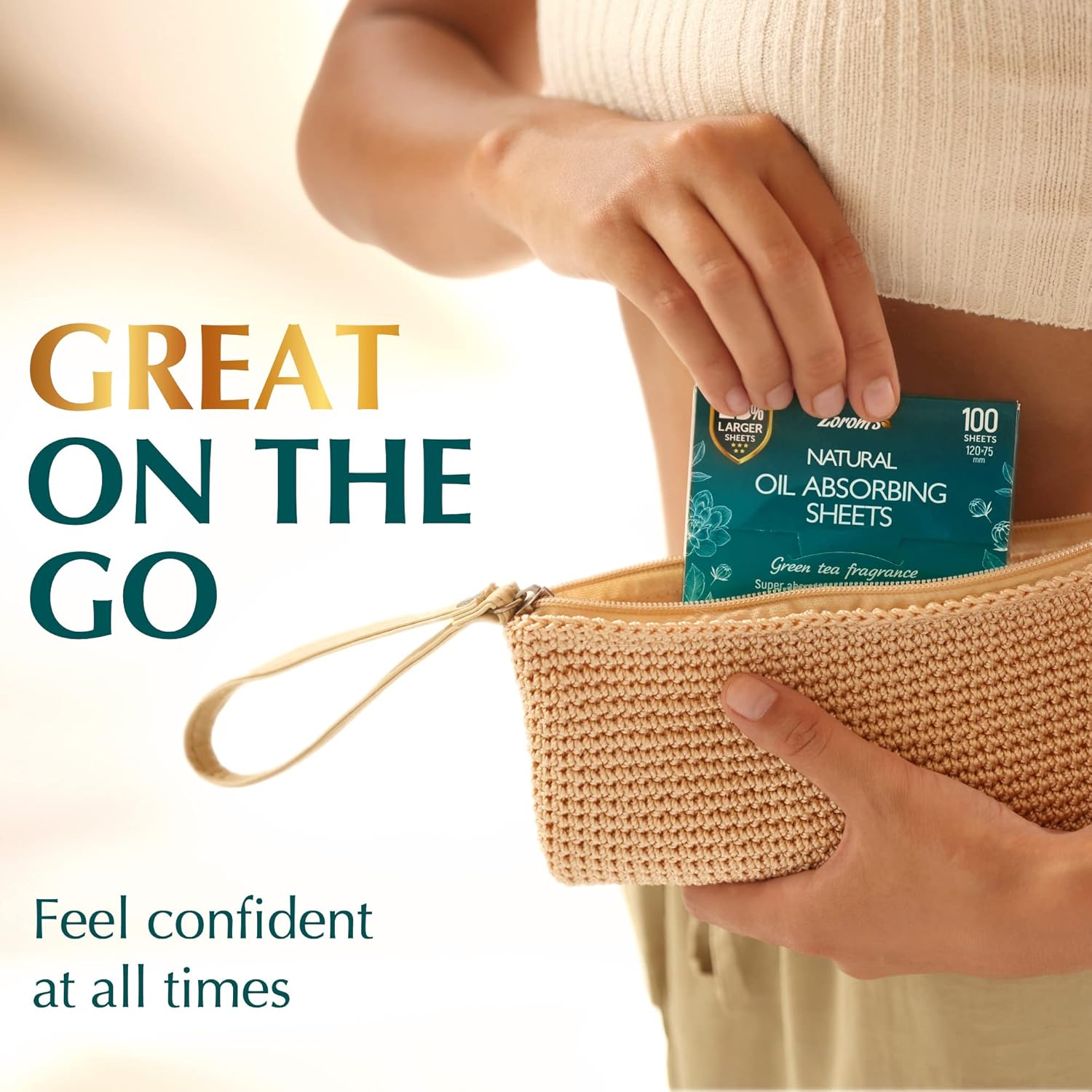- SUPERIOR OIL ABSORPTION – Zorom’s oil blotting sheets for face are designed to effectively absorb excess oil from the skin, providing a matte finish without causing dryness. These blotting papers for face with green tea extract keep your skin clean and fresh for longer while maintaining natural moisture levels.