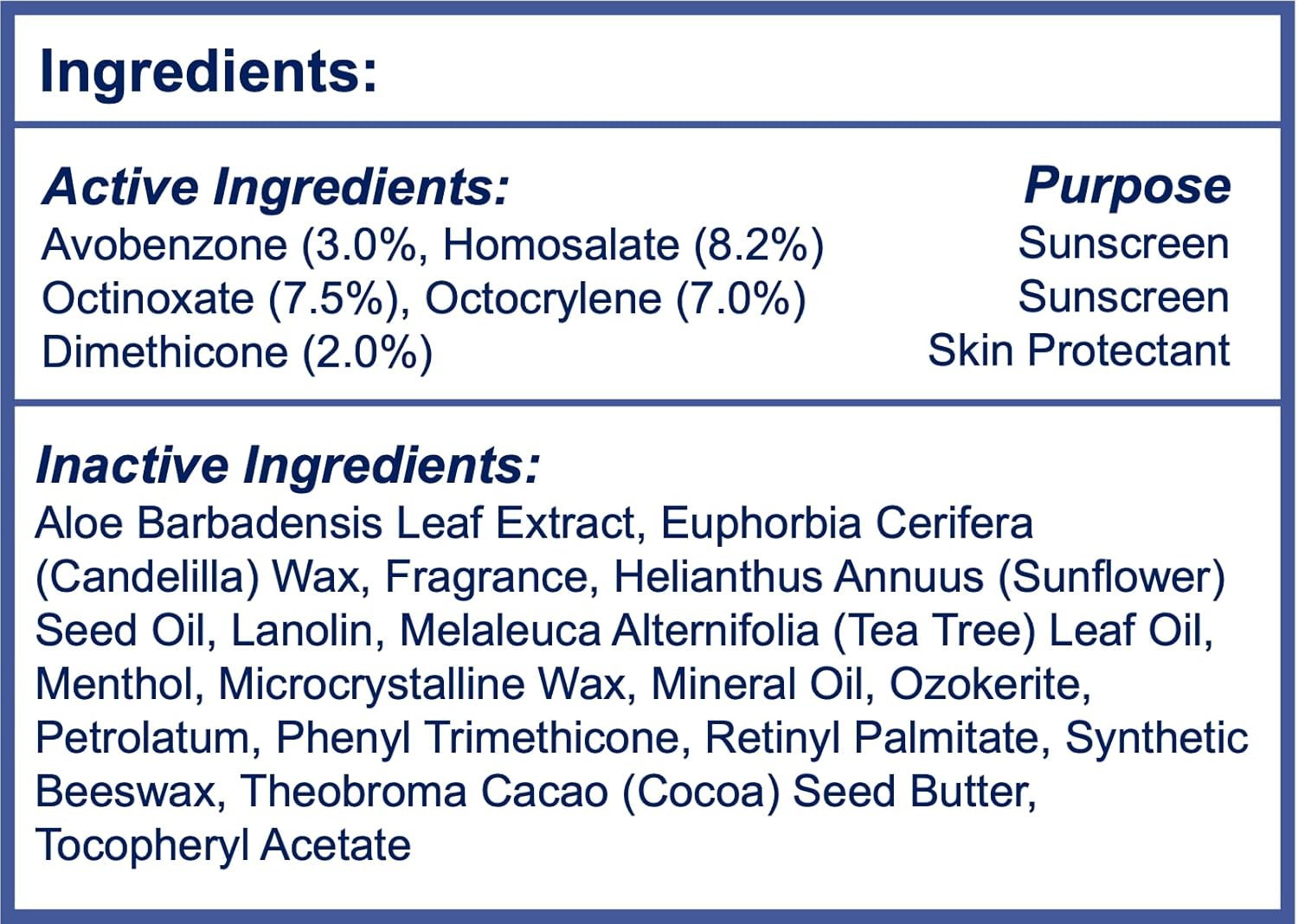 - MOISTURIZING AND MEDICATED: Our spf lip balm is medicated to protect, heal, and repair your skin in any environment. Specially formulated with ingredients like Cocao Butter, Aloe, Sunflower Seed Oil and Tea Tree Oil to soothe, repair and replenish your dry, cracked and chapped lips. Moisturizing lip sunscreen formula keeps your skin feeling healthy and soft.