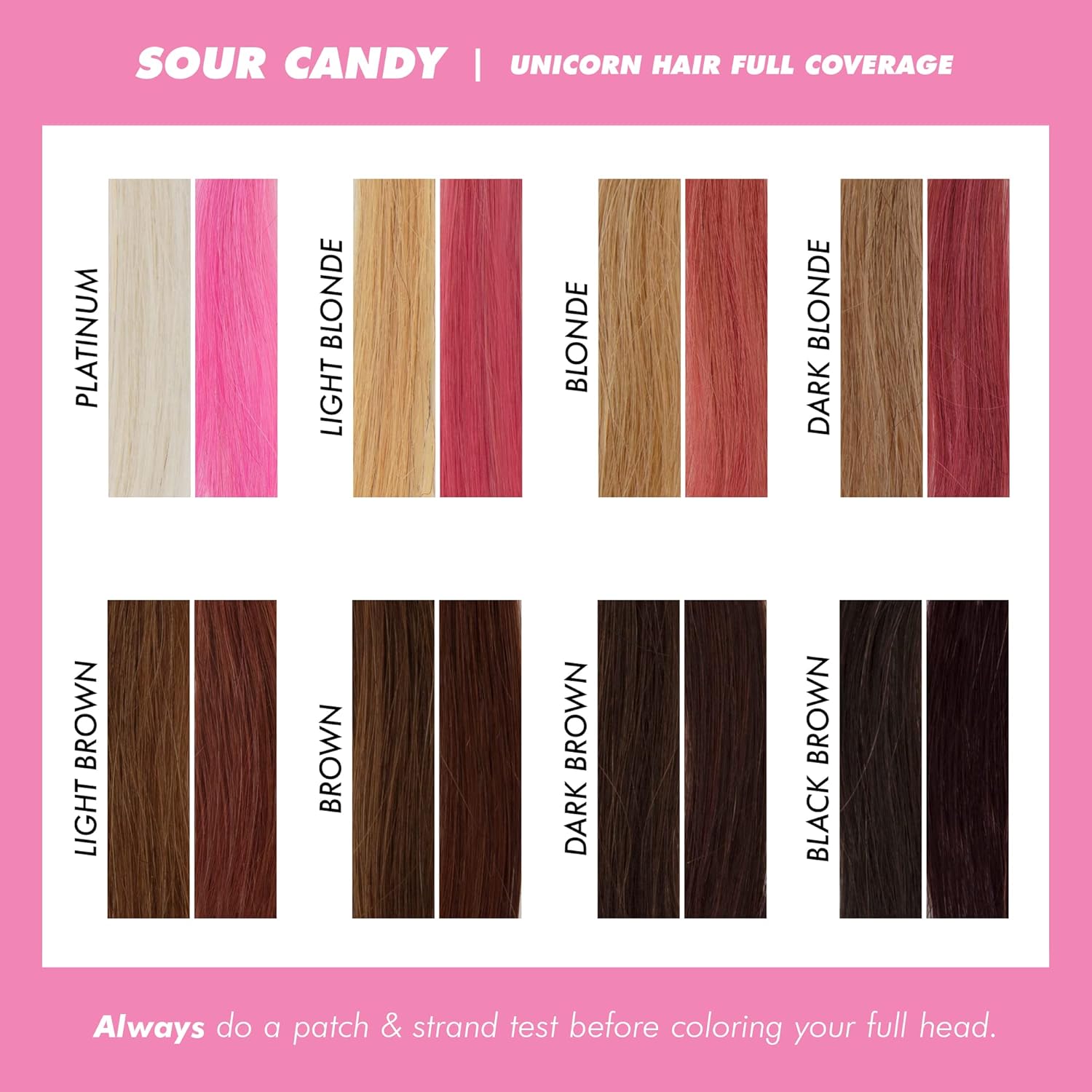 - Sour Candy Unicorn Hair Dye: Dyed and gone to Unicorn Heaven! Lime Crime Unicorn Hair is a DIY-friendly, semi-permanent color dye that transforms hair into vibrant colors... all from the comfort of your own home. Sour Candy is a true bright pink that will make your fantasy hair color dreams come true, and its sugary citrus vanilla scent will make your transformation even sweeter!