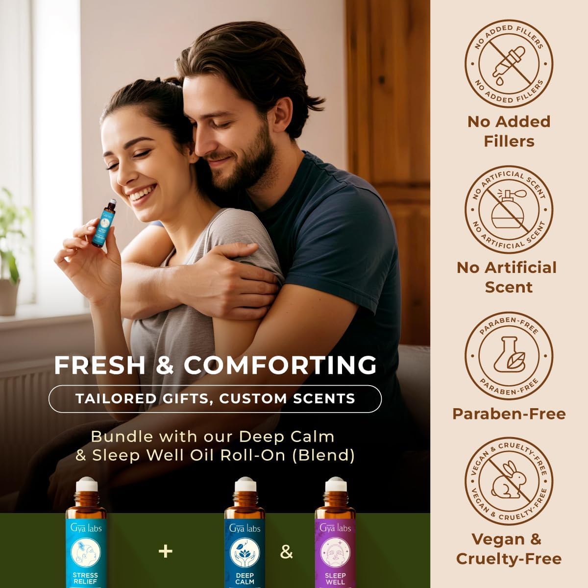 Gya Labs Stress Relief Essential Oil Roll on - Relaxing Gifts for Women & Men, 100% Pure Natural Essential Oil Roller, Blend with Ylang Ylang, Orange, Geranium & Lemongrass, Travel Size (0.34 Fl Oz)