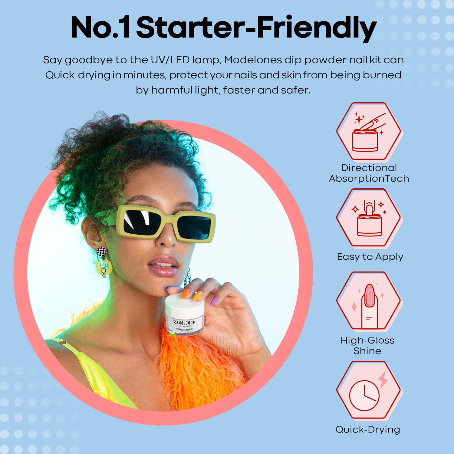 - š¤SAFETY & TIME SAVING: MODELONES White Dip Powder doesnāt need nail lamp to cure, which can avoid making your skin black. It's a faster way to paint your nails.