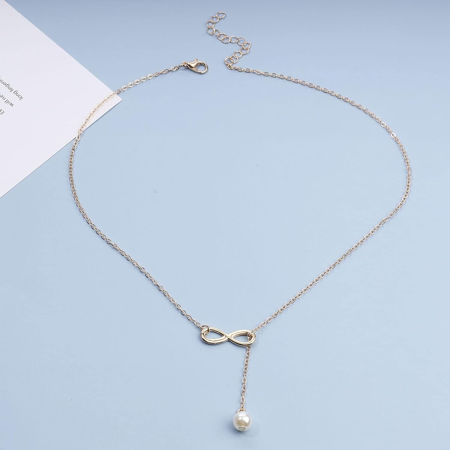 Boho Pearl Infinity Necklace Silver Y Pearl Necklace Minimalist Chain Y Lariat Necklace Chain Jewelry for Women and Girls