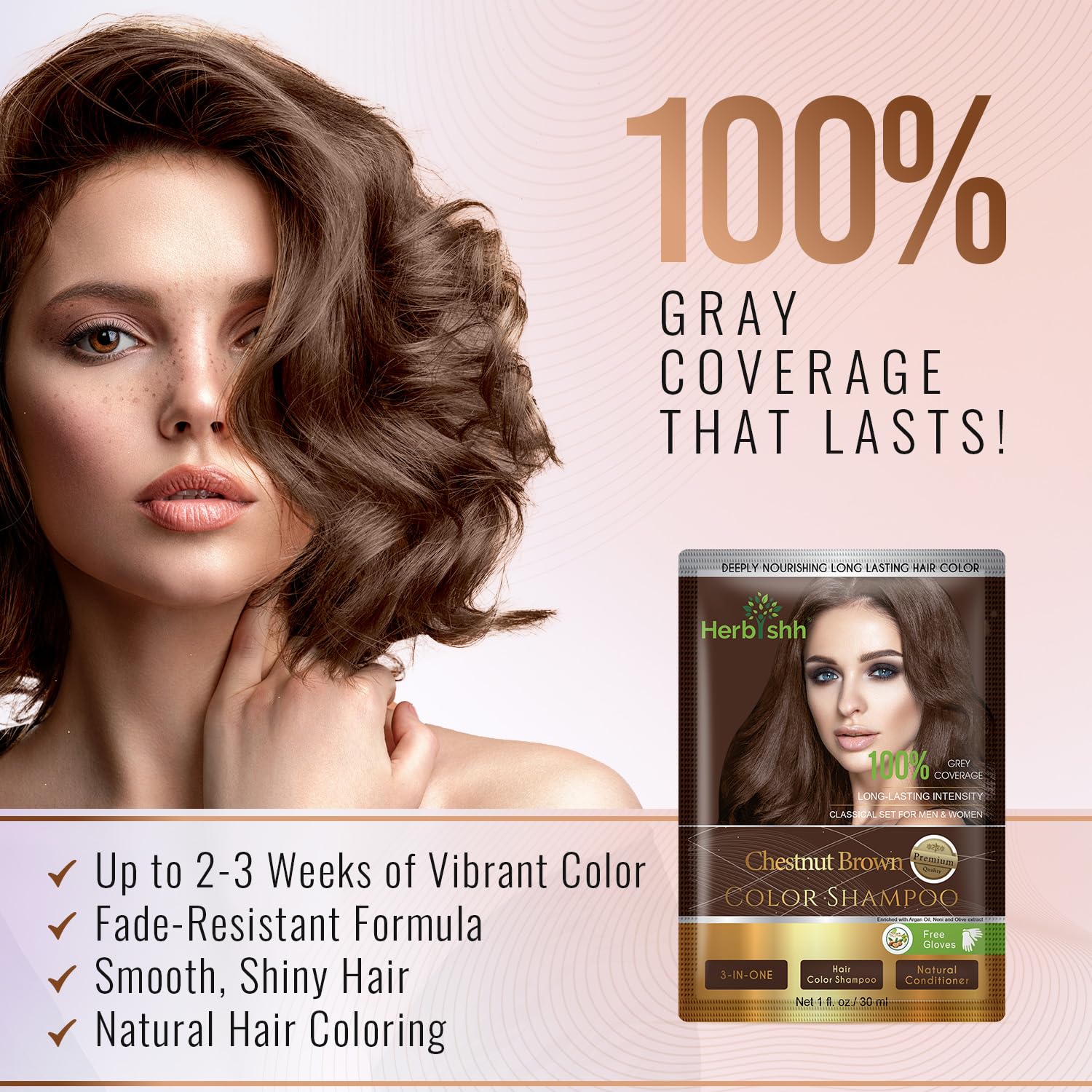 - LONG LASTING GREY COVERAGE – Give your greying hair a new lustrous, vibrant, and young look, while replenishing the lost health of weak strands with Herbishh Hair Color Shampoo for Grey Hair. With a special combination of active botanicals, our hair color shampoo dye is sure to give your hair a deep Chestnut Brown color that will last up to 2 to 3 weeks.