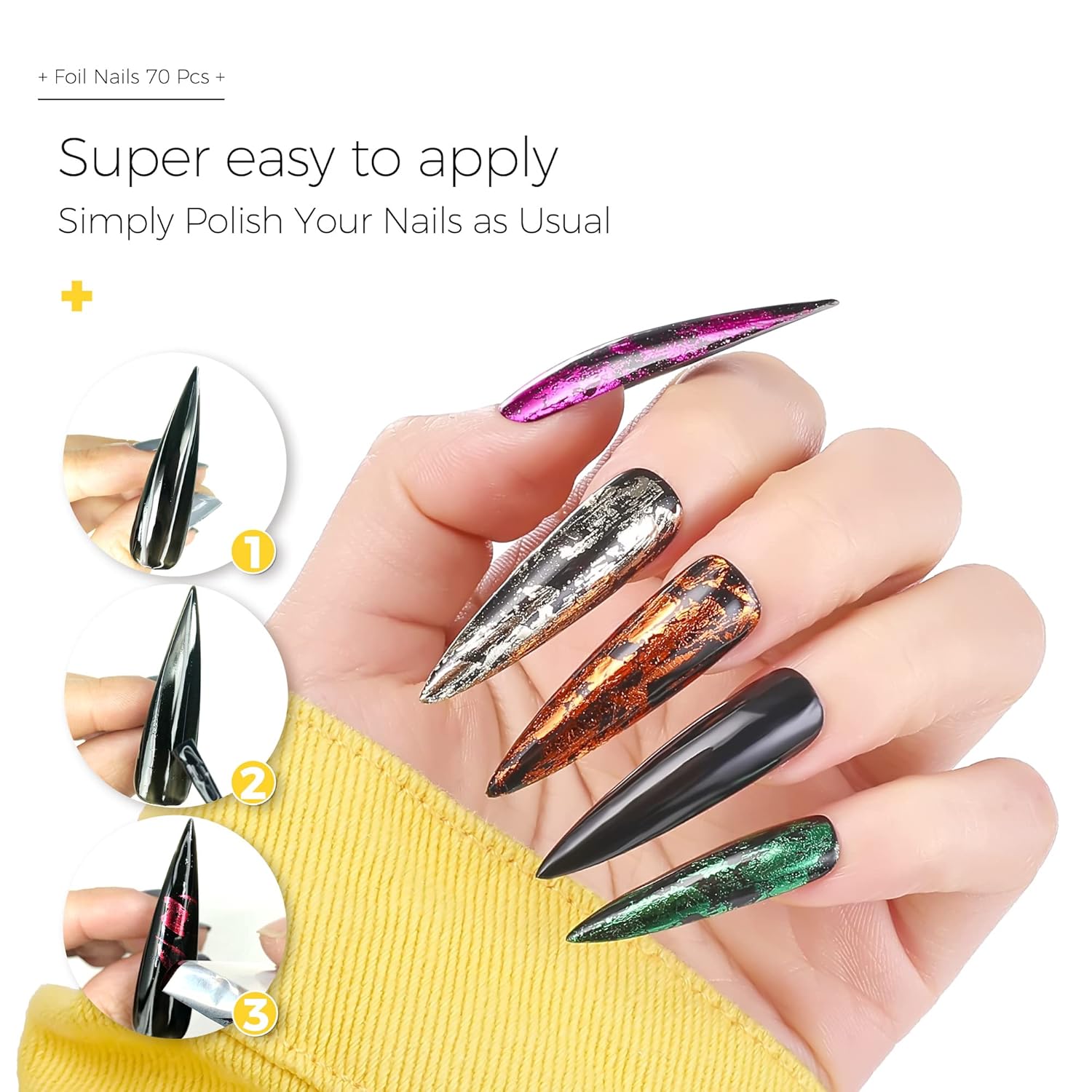 - The Most Popular 70 PCS Different Stickers Included--Burano nail foil kit includes 70 PCS(4cm*20cm) nail foil glue with foil stickers set, you can create more than thousands of designs with transfer foils, transfer foil glue DIY on your own way.