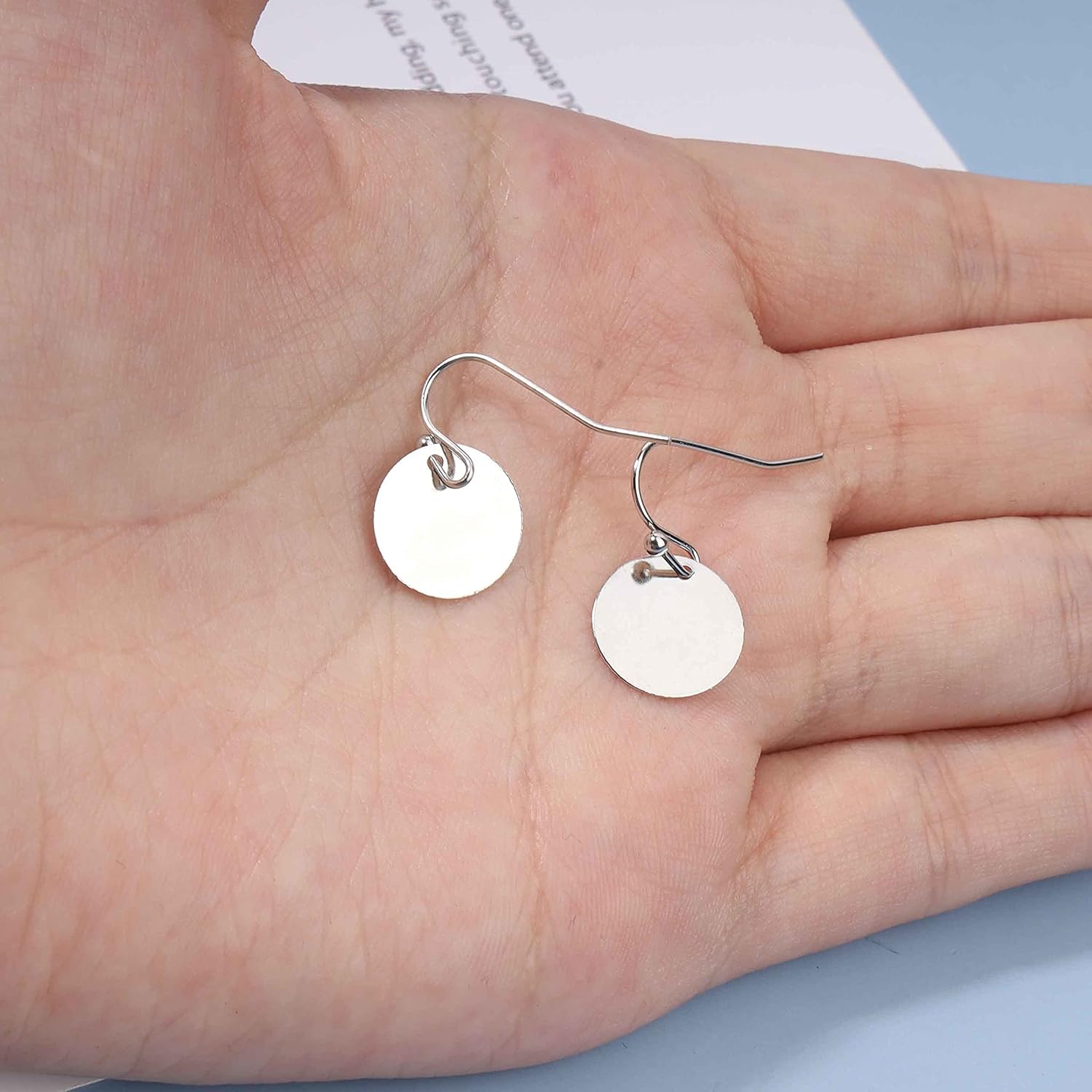 Boho Disc Coin Drop Earrings Tiny Circle Dangle Earrings Silver Smooth Coin Hook Earrings Minimalist Geometric Earrings for Women and Girls