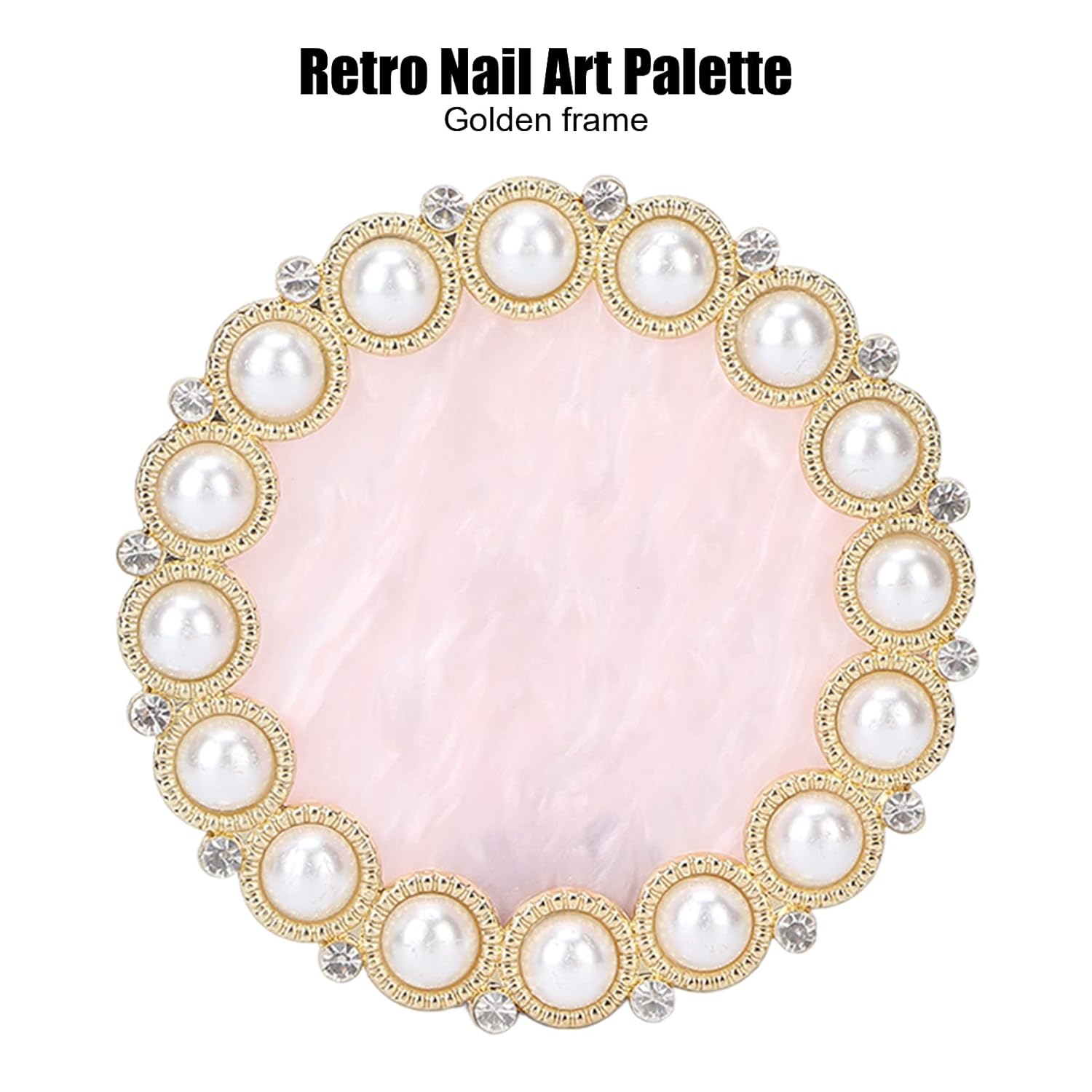 Resin Stone Nail Art Palette, Nail Art Display Board Cosmetic Nail Mixing Palette Drawing Color Mixing Nail Art Painting Gel Palette Tips Display Plate(Golden)