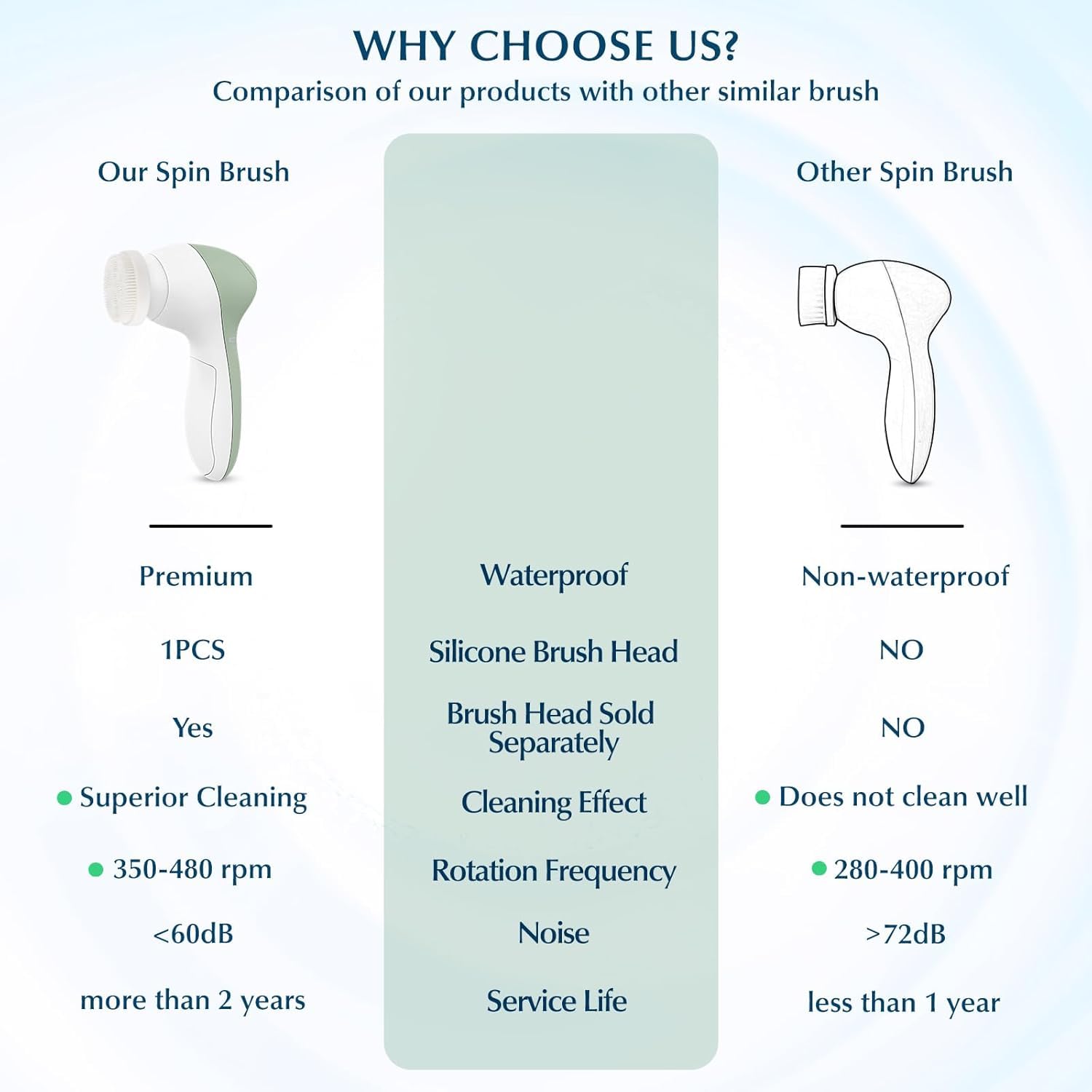 - SUPERIOR PERFORMANCE & DURABLE: We are committed to making the quality better through experimental comparison. The motor of our portable face brush far exceeds the market level, provides twice the power of regular roating brushes. It is equipped with three cleansing bristle brush heads for replacement to ensure clean use as well as a durability to make your skin healthier