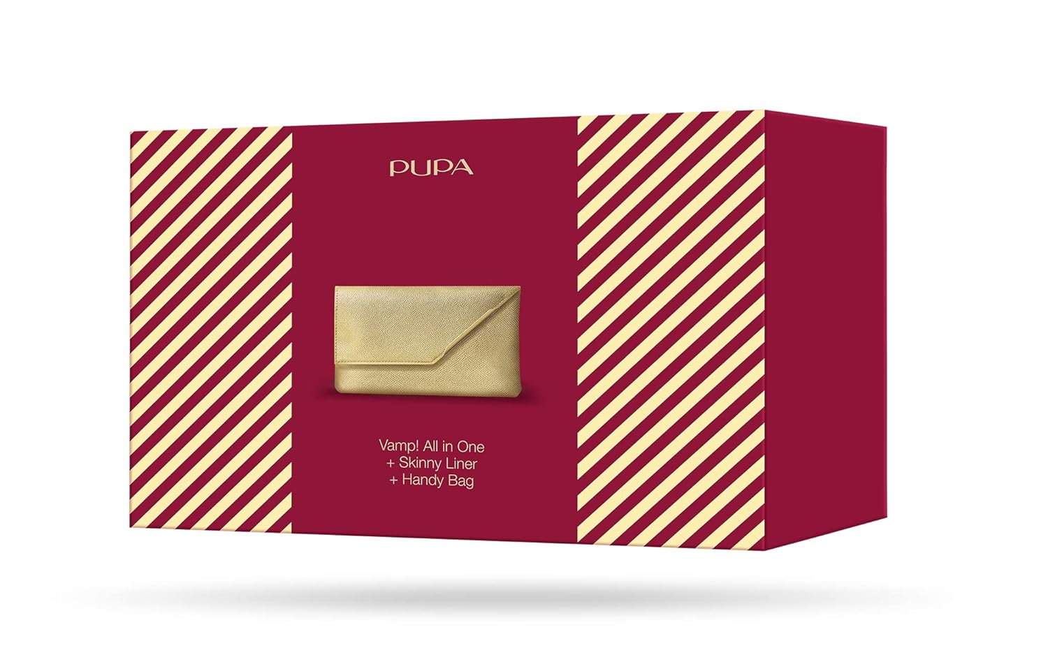 PUPA Milano Vamp! All In One And Skinny Liner Set - Volume Mascara And Ultra-Slim Eyeliner Pen - Naturally Formulated To Lengthen And Strengthen Lashes - Beautiful Gold Handbag - 3 Pc Mascara Kit