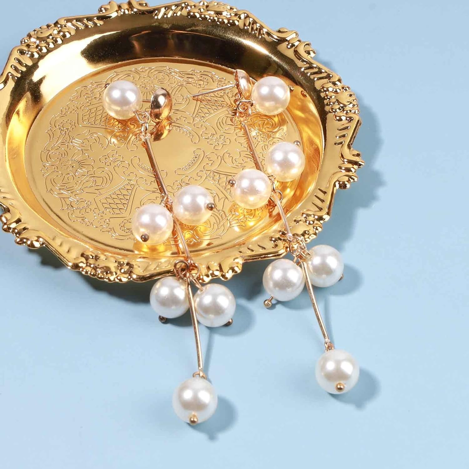 - Dangle Pearls Earrings are available in gold,stay long and won't tarnish.