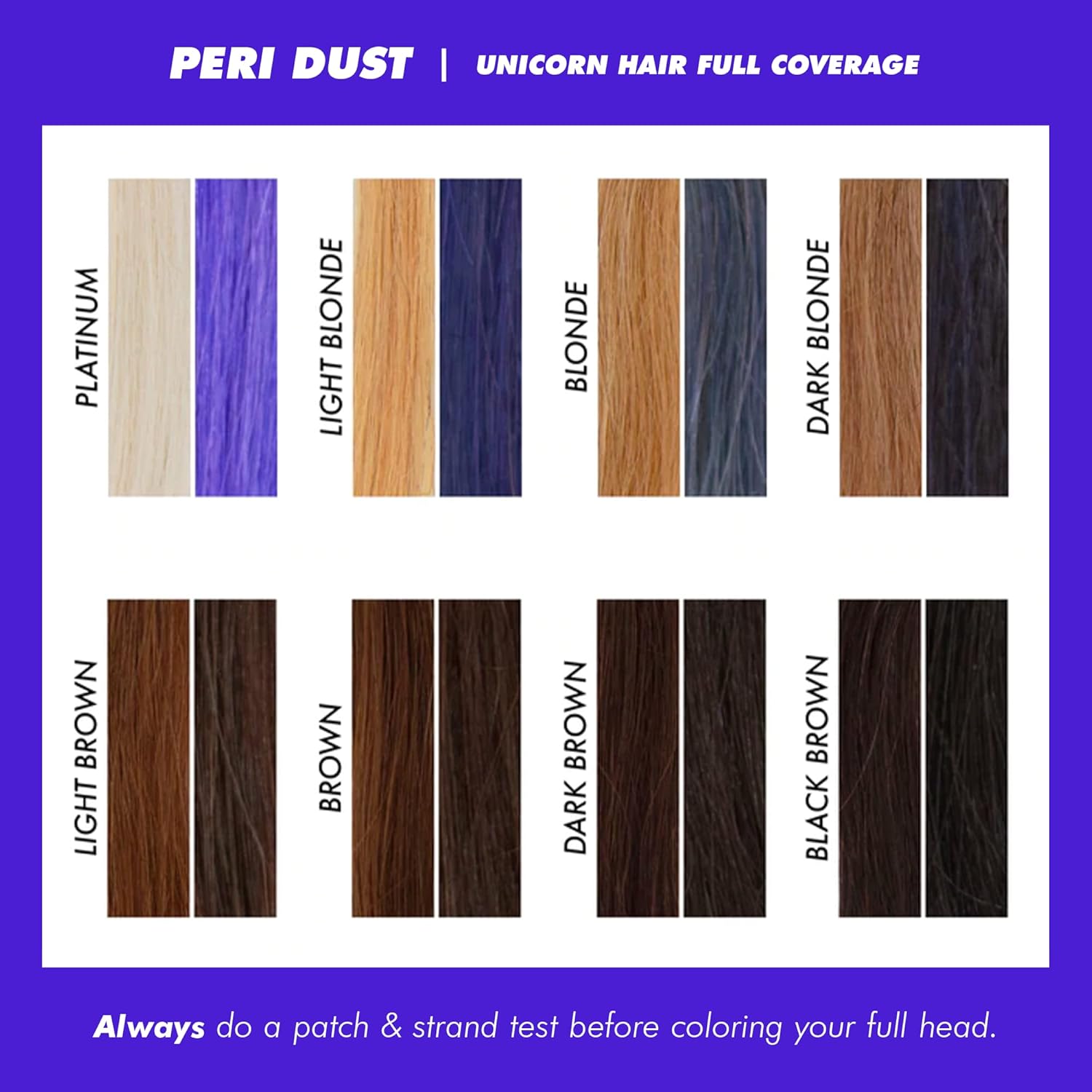 - Peri Dust Unicorn Hair Dye: Dyed and gone to Unicorn Heaven! Lime Crime Unicorn Hair is a DIY-friendly, semi-permanent color dye that transforms hair into vibrant colors... all from the comfort of your own home. Peri Dust is a beautiful true bright blue that will make your fantasy hair color dreams come true, and its sugary citrus vanilla scent will make your transformation even sweeter!