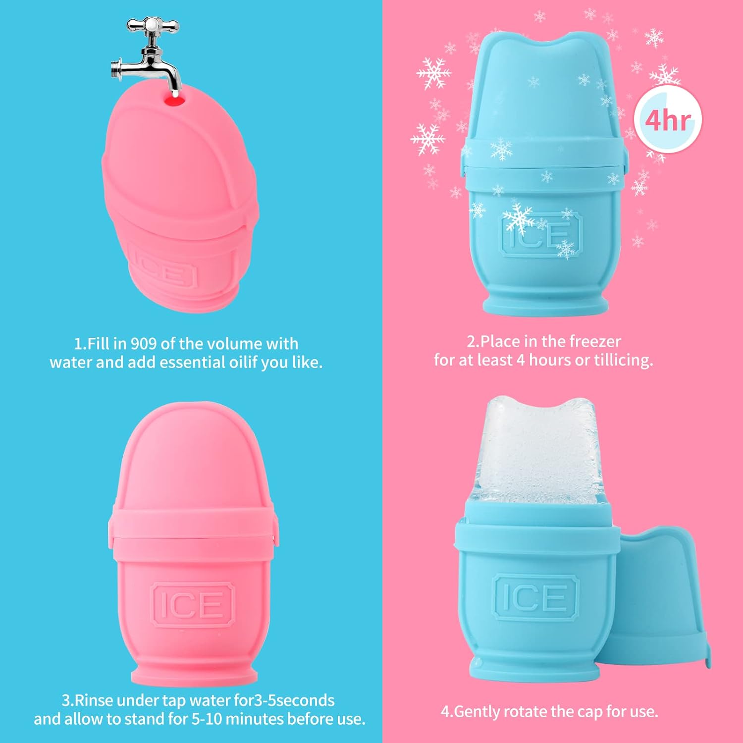 - [Relieve Pain and Stress] After applying the skin care product, roll the ice cube back and forth over the skin to assist the serum sink deeper. Furthermore, the cooling impact of ice aids in the relief of headaches, joint discomfort, and muscle tension or injury.