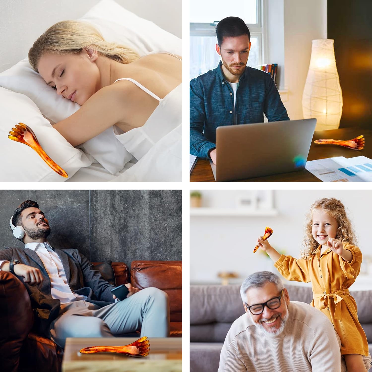 - Deep Relaxation & Reduce Stress: Use the scalp massager to slowly massage your scalp,neck ,legs and shoulders forward and back , You will feel relaxed and relieved, it Can improve sleep and reduce stress.