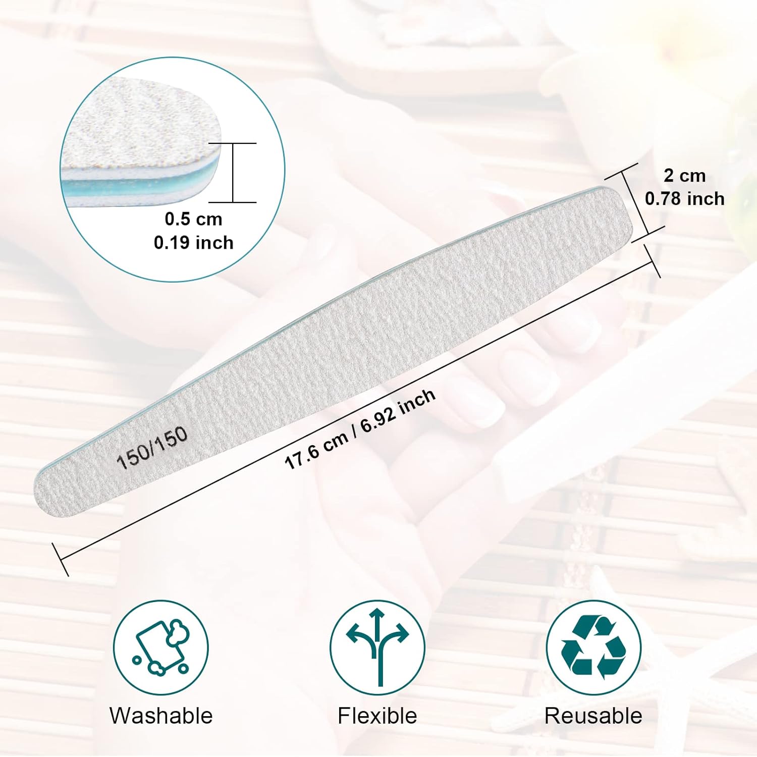 - Premium Emery Boards for Nails : The 150/150 Nail Files are made with top quality adhesive tape & sandpaper, emery board materials, ECO sponge and strong PP board, Designed with racket shape & Double Sides.