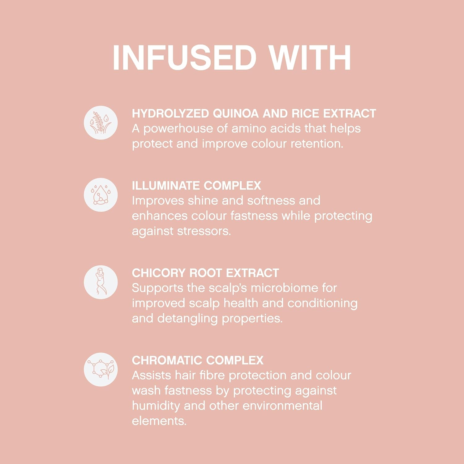 - Color Rinse Conditioner: This is a color rinse conditioner that helps restore color vibrancy and luminosity.