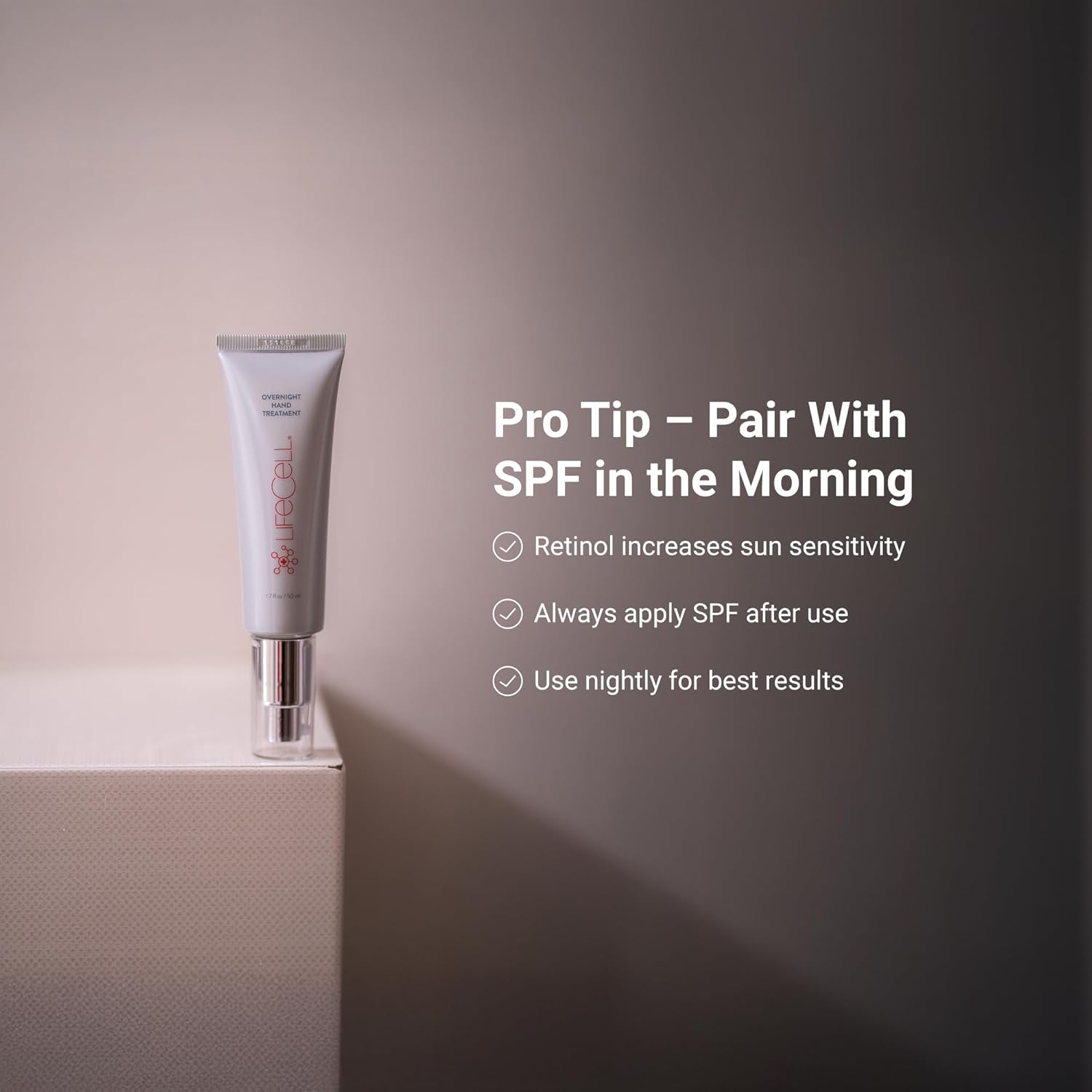 LifeCell Retinol + Vitamin C Overnight Hand Treatment – Anti-Aging Hand Cream for Dark Spots, Wrinkles & Dry Skin – Moisturizing Night Repair with Argan Oil – 1.7oz