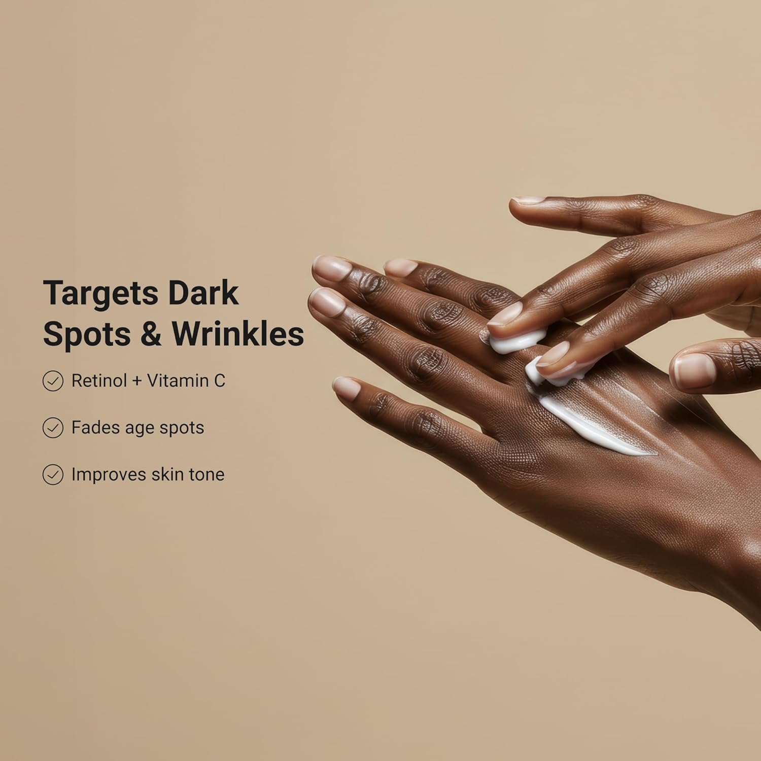 - POWERFUL OVERNIGHT HAND TREATMENT FOR DARK SPOTS & AGING – Formulated with dermatologist-recommended Retinol and Vitamin C to target age spots, uneven tone, and signs of aging while you sleep.