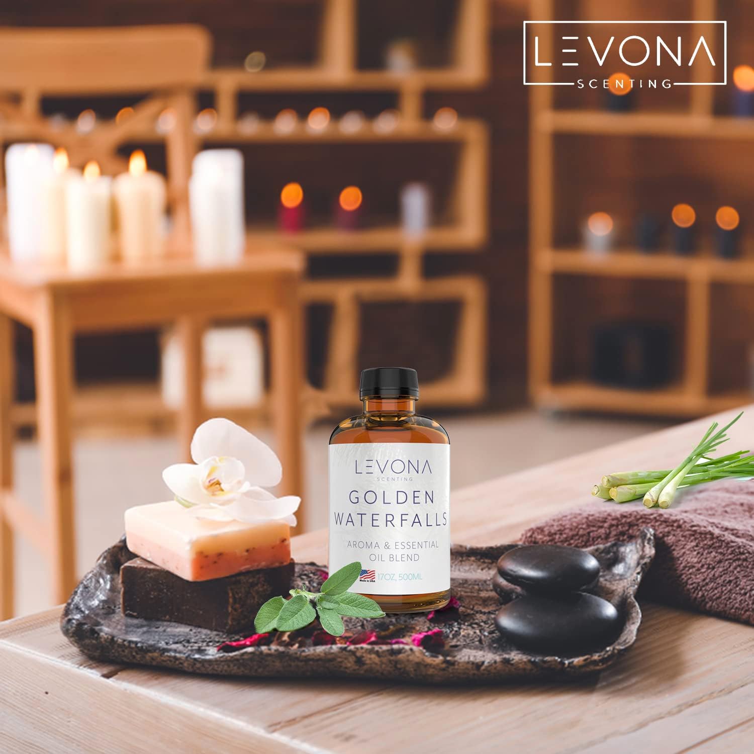 Levona Scent Pure Essential Oils for Diffusers for Home, Hotel & Office - Golden Waterfalls Essential Oils for Diffuser Oil and Humidifiers - Home Luxury Scents - Scented Fragrance Oil Blends