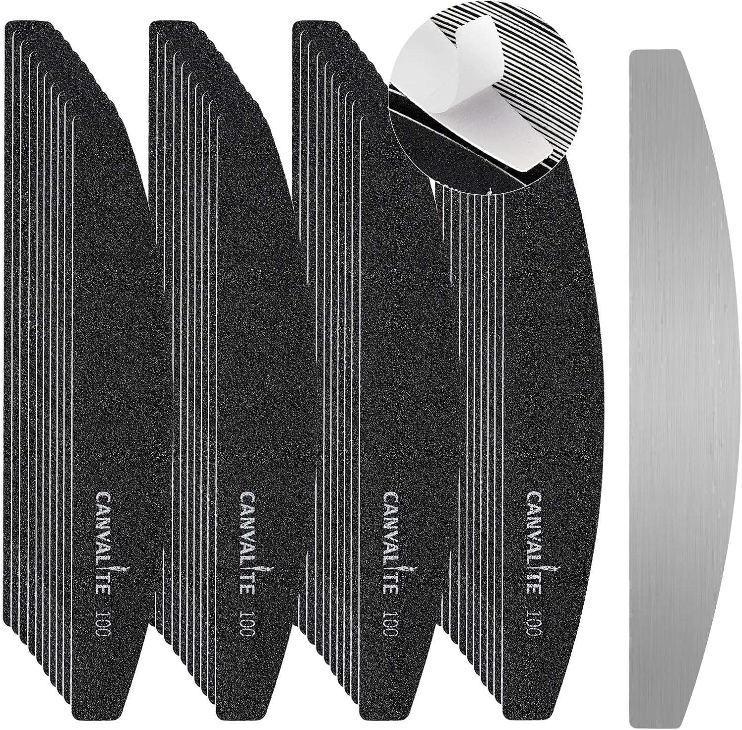 Canvalite 40 PCS Nail File Professional Reusable Peel and Stick Nail Files Replaceable Emery Boards 100 Grit Fingernail Files Manicure Tools for Home and Salon Use