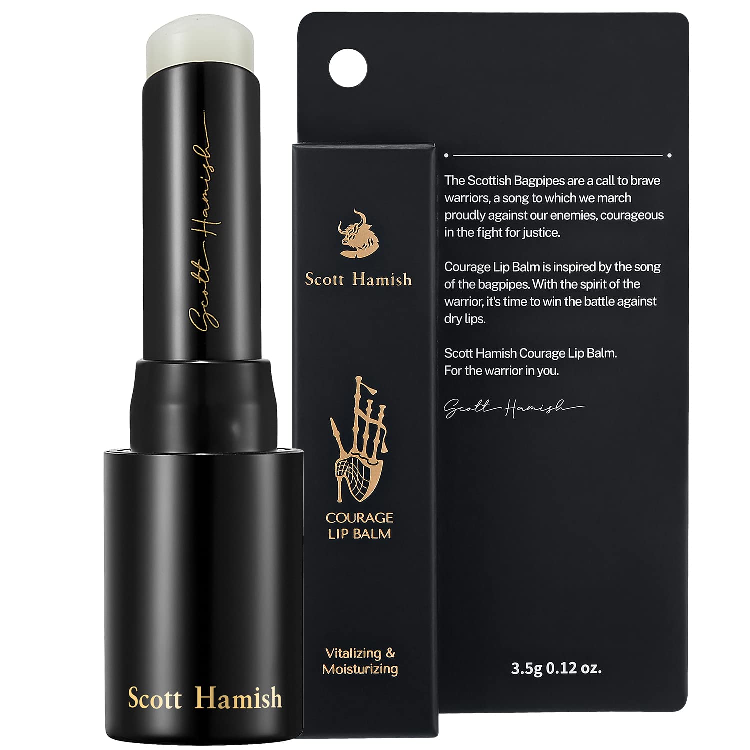 - SCOTTISH LIP BALM FOR MEN: Scott Hamish Courage Lip Balm contains Scottish Blended Complex, a blend of grain extracts containing barley, malt, and corn to replenish the lip with moisture. The Milk Thistle & Cica Extracts create a soft layer to protect the skin.