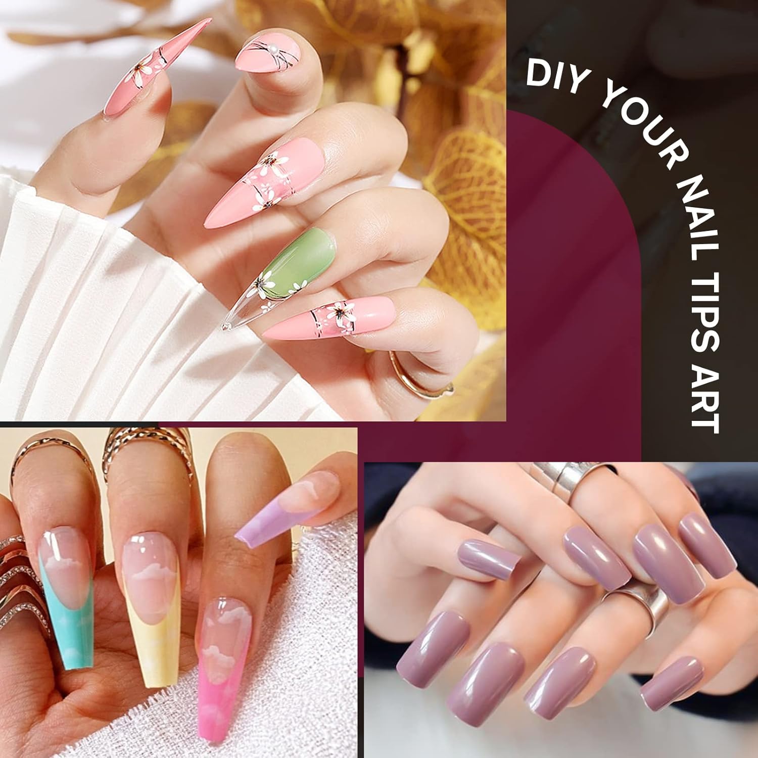 - 【Quality Materials】:Our fake nail tips are made with ABS material, they are breathable, lightweight, makes your nails look natural and nice. No toxins, no smell, no harm to your nails and health.These false nails tips can provide you with a safe and comfortable nails manicure experience