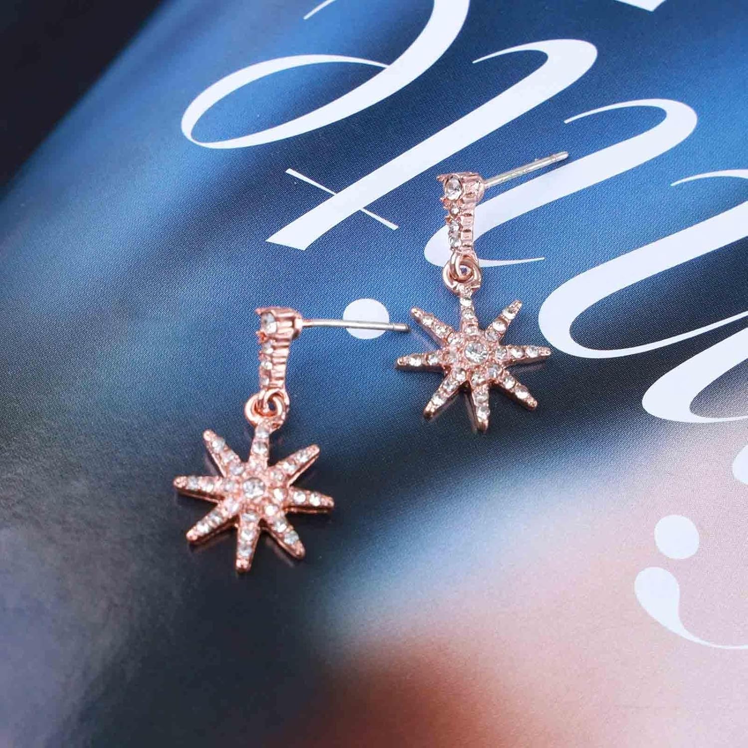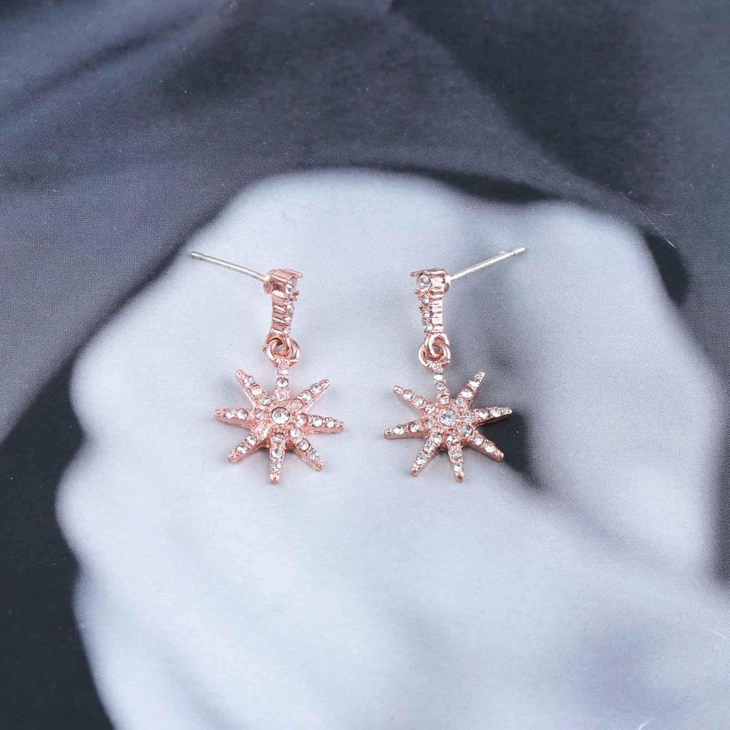 Boho Crystal Sunburst Earrings Rose Gold Star Drop Stud Earrings Cz Paved Starbust Earrings Celestial Earrings Jewelry for Women and Girls