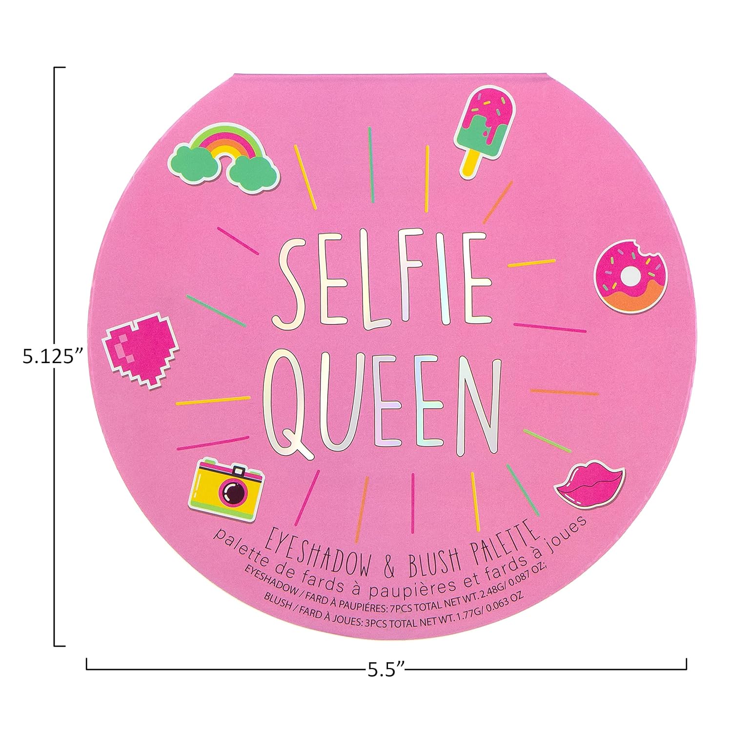 Expressions Selfie Queen Glisten & Glitter Makeup Palette 10 Color Eyeshadow Palette & Blush Makeup Novelty Beauty Set, Fold Out Compact with Mirror, Cute Makeup Kit Gifts - Washable, Non-Toxic