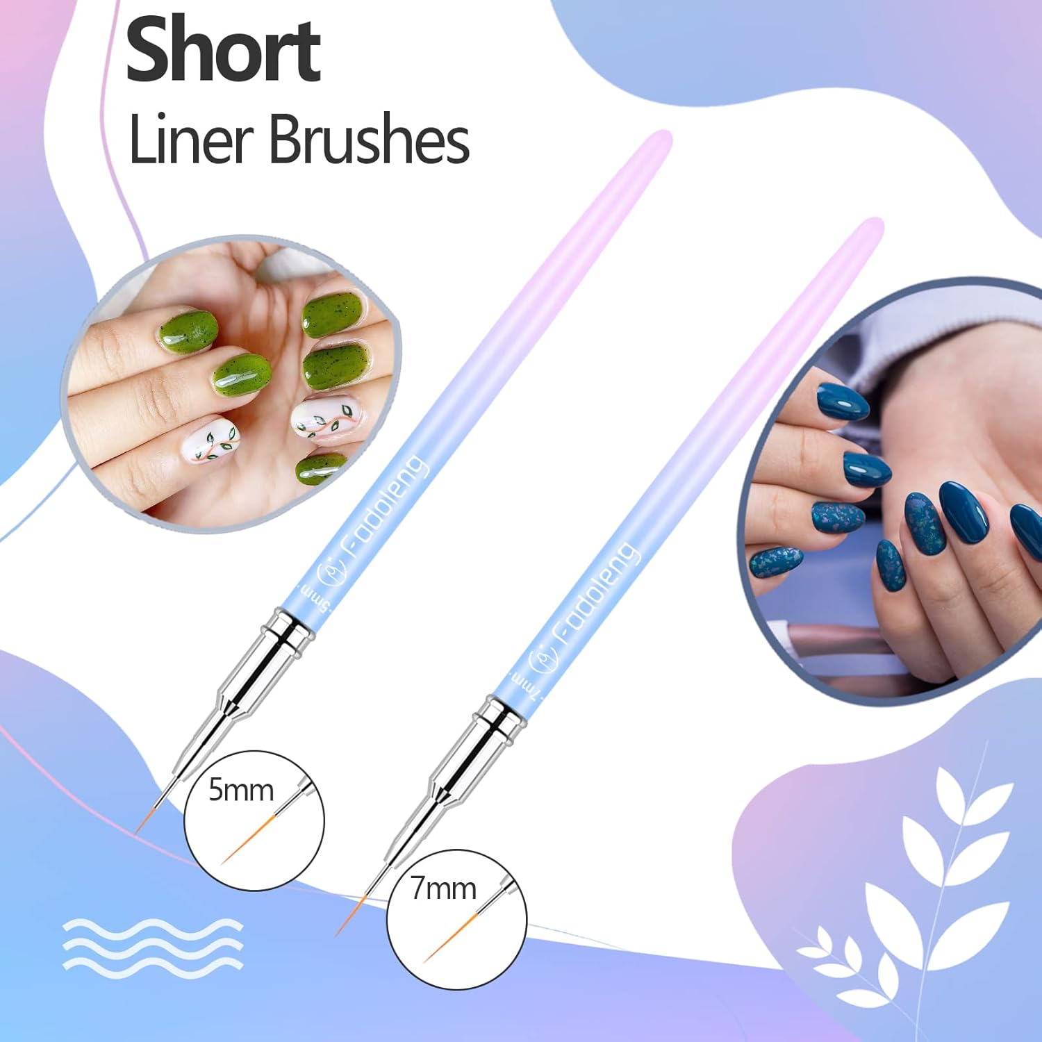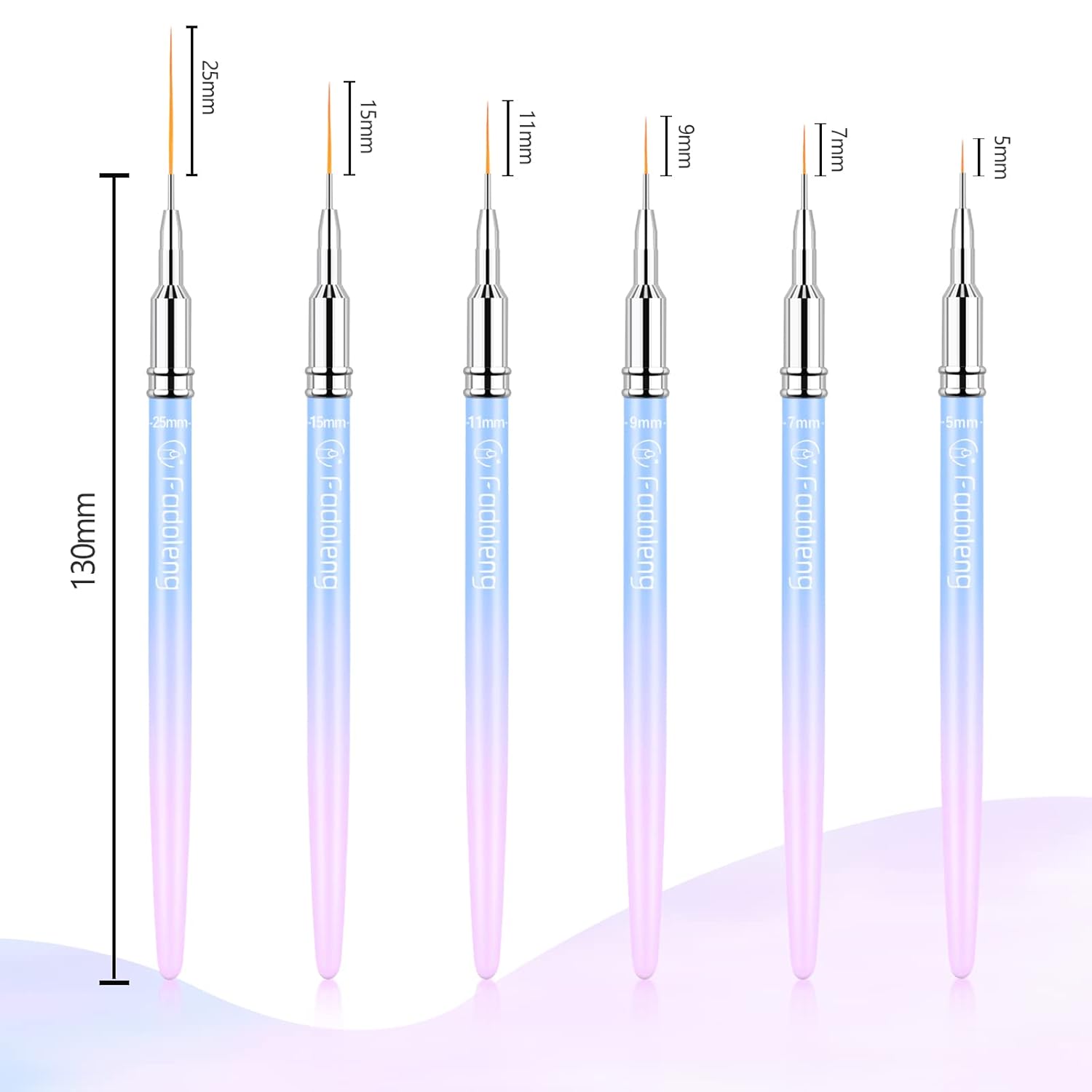 - Value Pack - This set includes 6 small nail art brushes of different lengths(5/7/9/11/15/25mm), meet various nail art needs. From intricate designs to simple patterns, you'll unleash your creativity and achieve stunning nail art results with the nails design brush