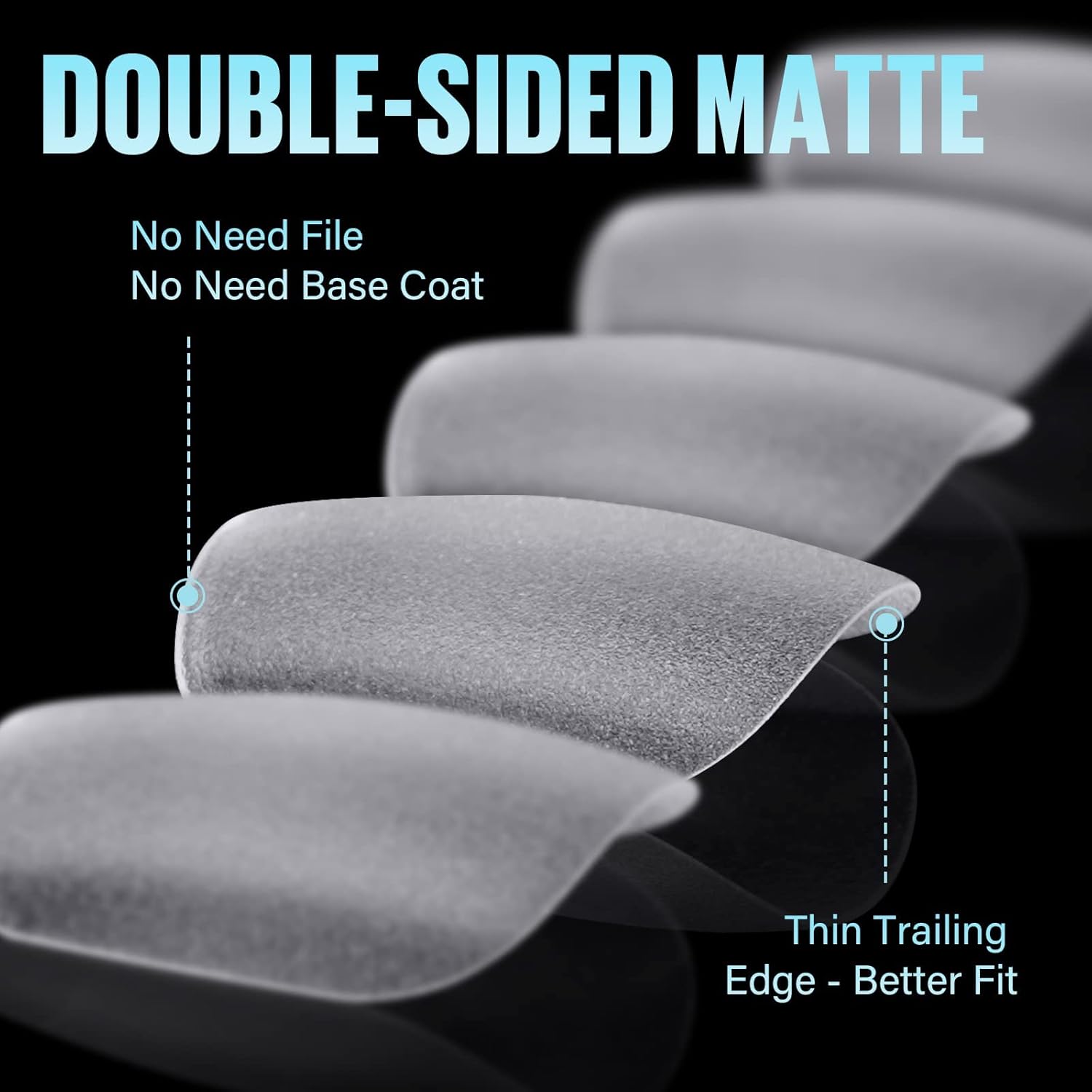 - 【Pre Buffed Nail Tips】The upgraded pre-buffed nail tips give you the privilege of "no file, no base coat". Protect your nail beds while saving time. Double-sided matte acrylic nails have stronger adhesion and can be pasted more firmly.