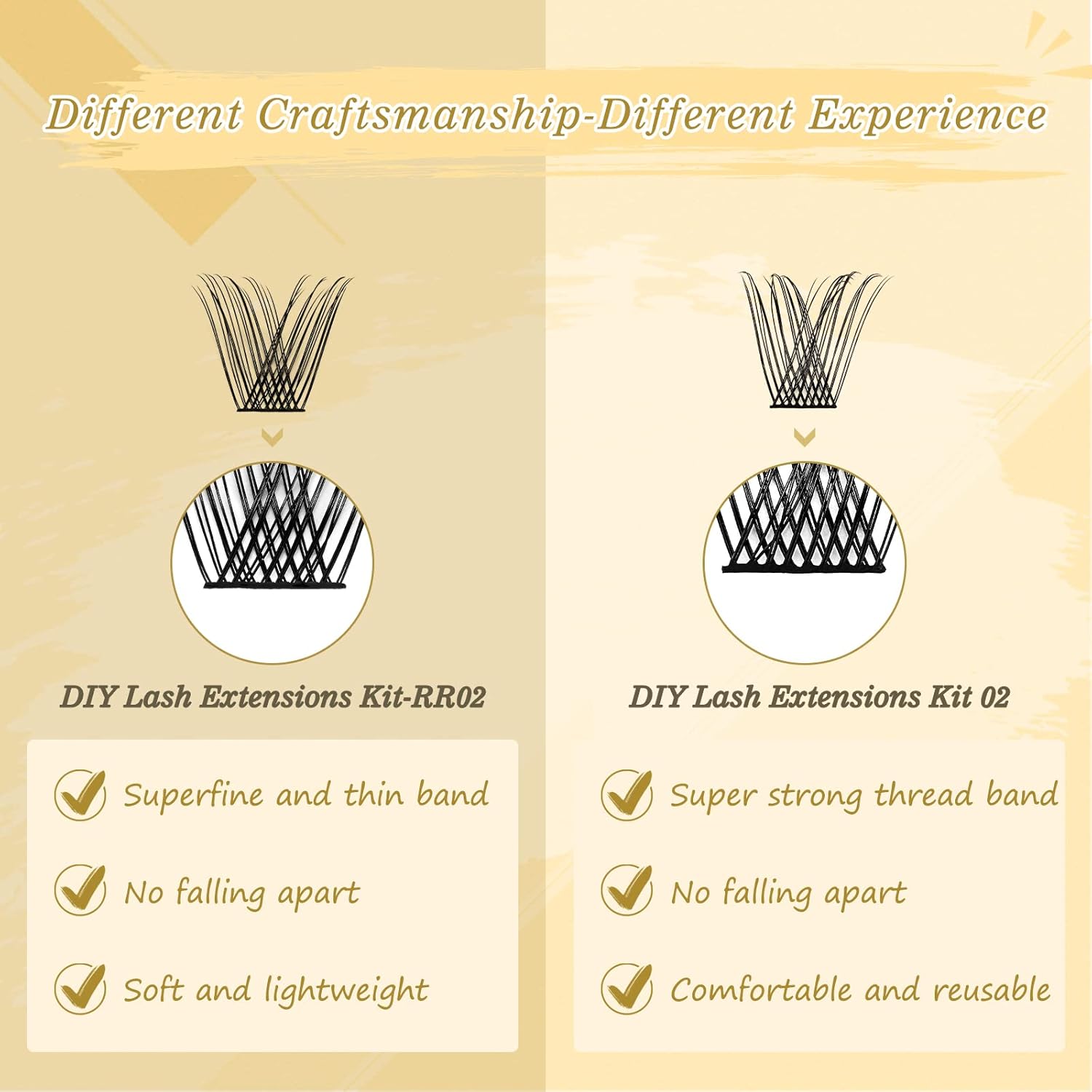 QUEWEL DIY Lash Extensions Kit Lash Clusters 144 Pcs, Cluster Lashes Golden Lashes Tweezers, Eyelash Clusters Bond and Seal Waterproof, Cluster Lash Glue Remover for DIY Lash Extensions (QU-RR-DH-02)