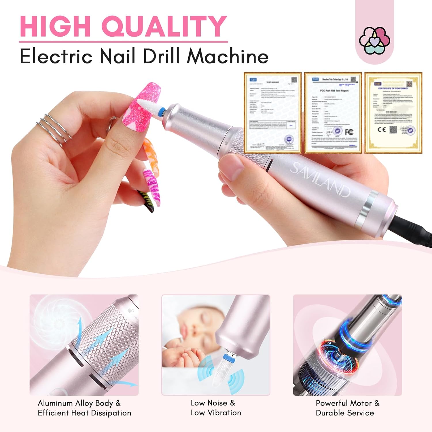 - Professional Nail Drill With Nail Bits: Saviland portable electric nail drill set comes with a nail drill machine and a nail drill pen, up to 40000RMP! Which can help you quickly remove nail art/dead skin/calluses/cuticles. Whether you use this product in a nail salon or at home, you can experience the most comfortable nail art