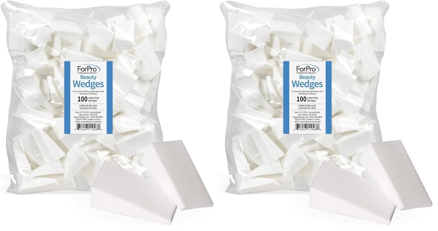 ForPro Beauty Wedges, Latex Free Foam Sponges, Makeup Blenders for Powder and Liquid Makeup, 100-Count (Pack of 2)