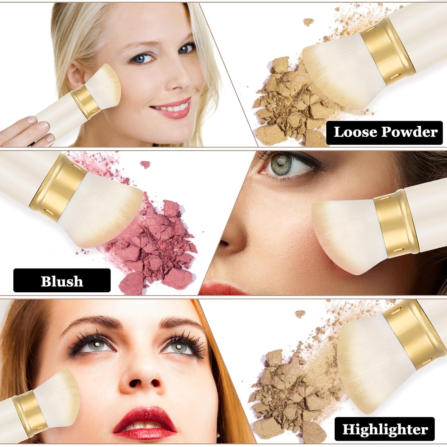 - 【Soft and Silky Brush Hair】 The angled kabuki foundation brush made with high quality synthetic fibers, super soft, perfect for blending Liquid foundation , sunscreen, blush, cream, self tanner, buffing, stippling, concealer, bronzer, loose powder cosmetics or nail dust. allows you to tap on products for flawless, air-touched, full-coverage finish, don't absorb foundation into the brush itself.