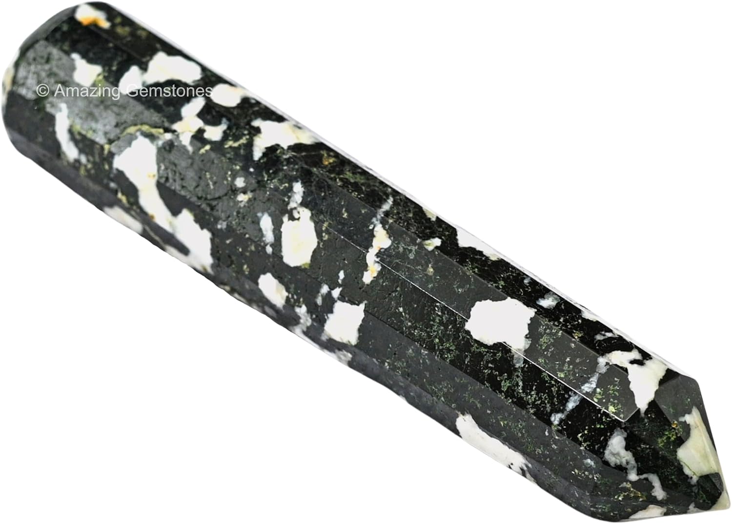 Amazing Gemstone Black and White Tourmaline Crystal Wand Massage Stick - Pelvic Wand Gua Sha for Adults - Crystals and Healing Stones Massage Wands for Adults Gifts (Pointed)